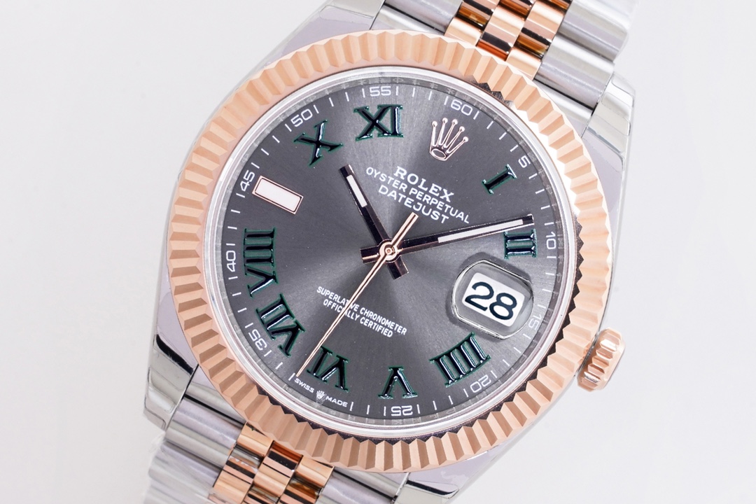 Rolex Datejust 36mm 41mm Green Roman Numerals Grey Dial Rose Gold & Steel Bezel 126331-0016
