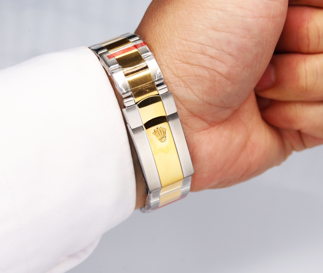 1. The classic Oyster case is matched with a triangular grooved outer ring