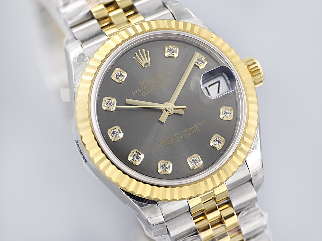 Rolex Datejust 31mm Grey Dial Diamond Bezel Yellow Gold & Steel 278343RBR-0022 Woman Ladies