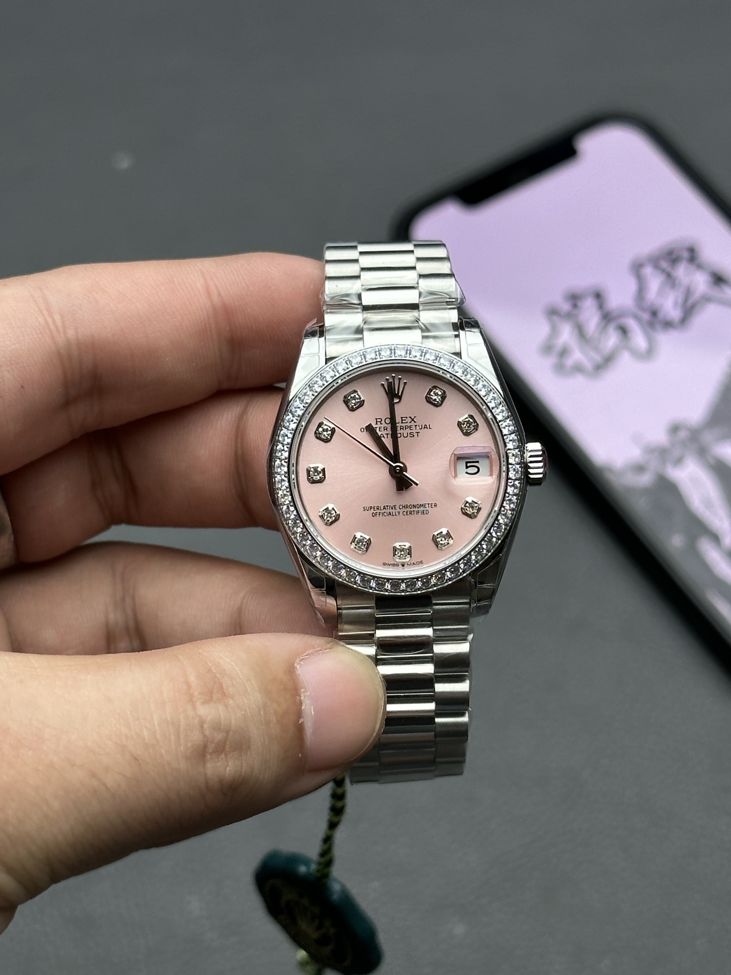 Rolex Datejust 31mm Diamond Pink Dial Diamond Platinum Bezel 278384RBR-0036 Woman Ladies