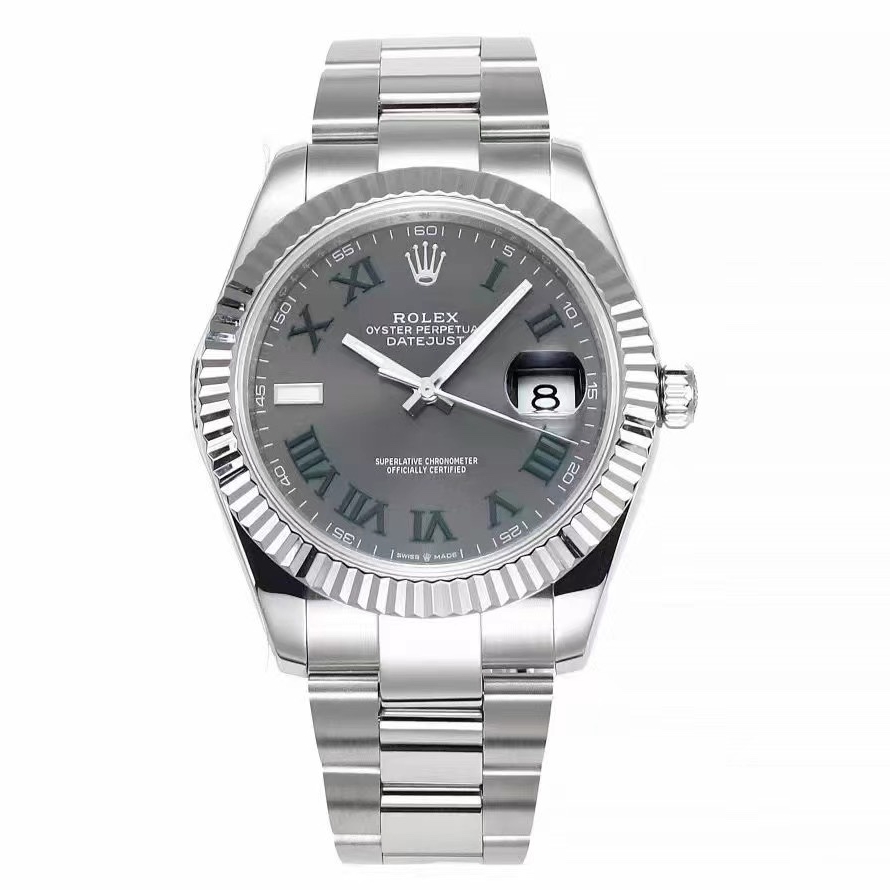 Rolex Datejust 36mm 41mm Green Roman Numerals Grey Dial Platinum Bezel 126234-0046