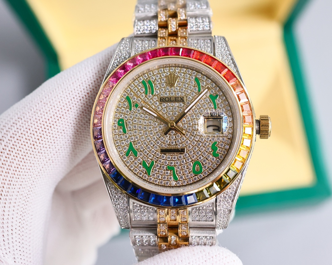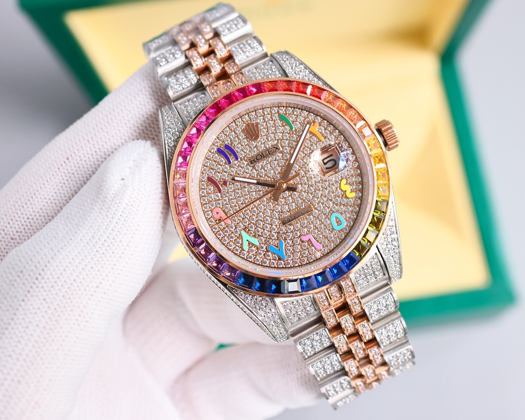 Rolex Datejust Rainbow 41mm Dial Arabia Rose Gold Full Diamonds Deluxe