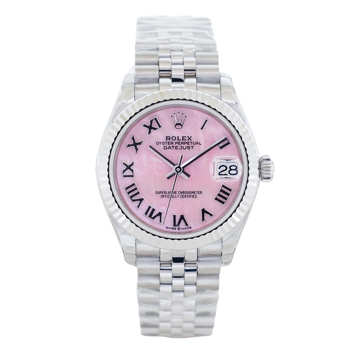 Rolex Datejust 31mm Pink Fritillaria Dial Steel Bezel 178274-0044 Woman Ladies