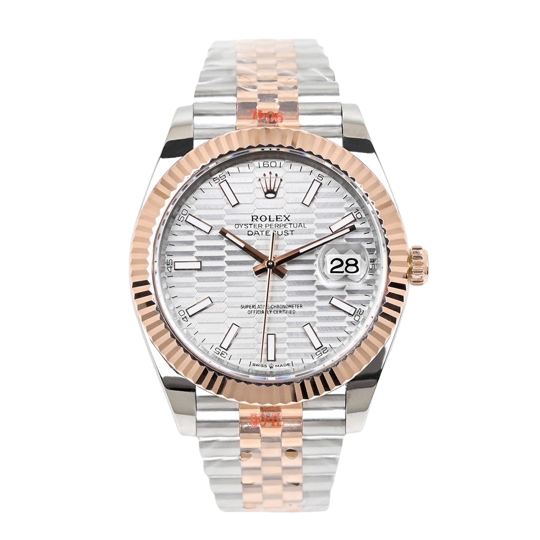 Rolex Datejust 36mm 41mm Water Ripples Silver Dial Rose Gold & Steel Bezel 126331-0018