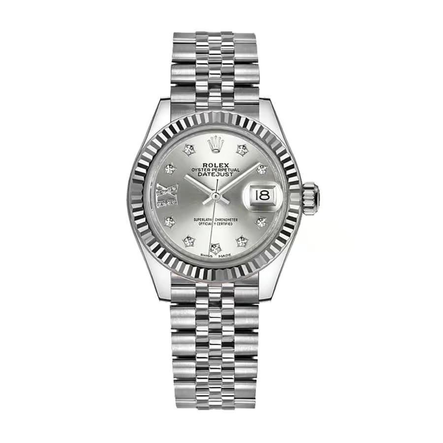Rolex Datejust 28mm Silver Diamond Dial Platinum Bezel 279174-0021