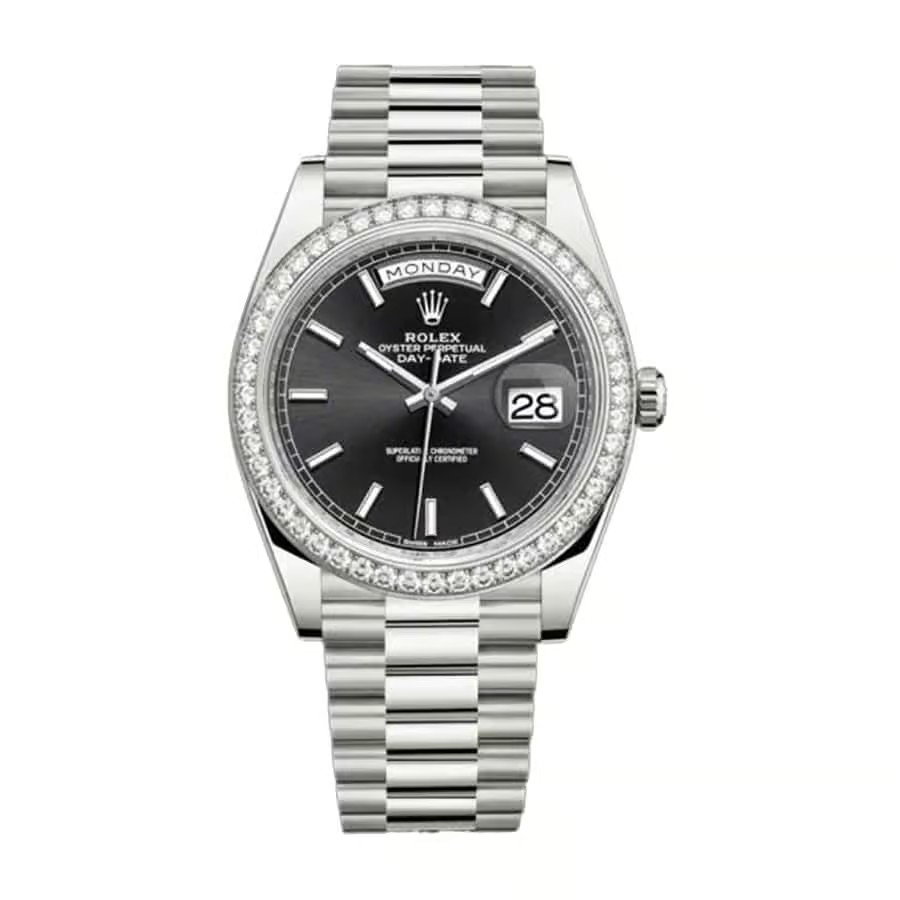 Rolex DayDate 36mm 40mm Dial Black Platinum Diamond 228349RBR-0002