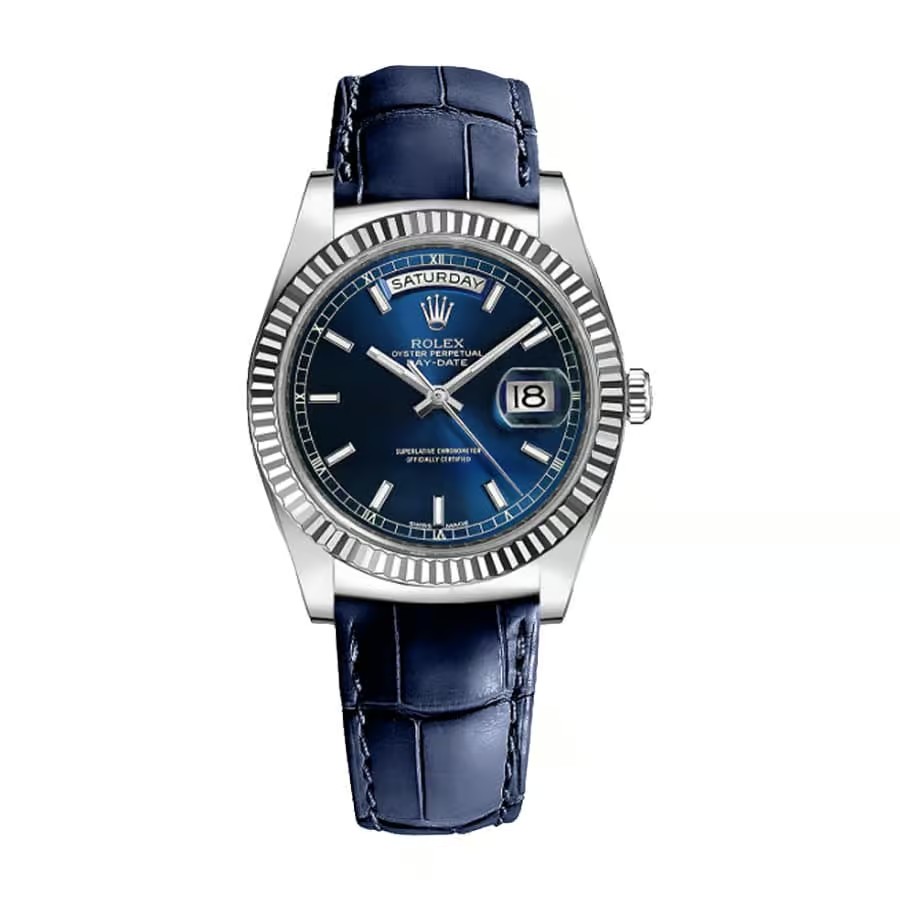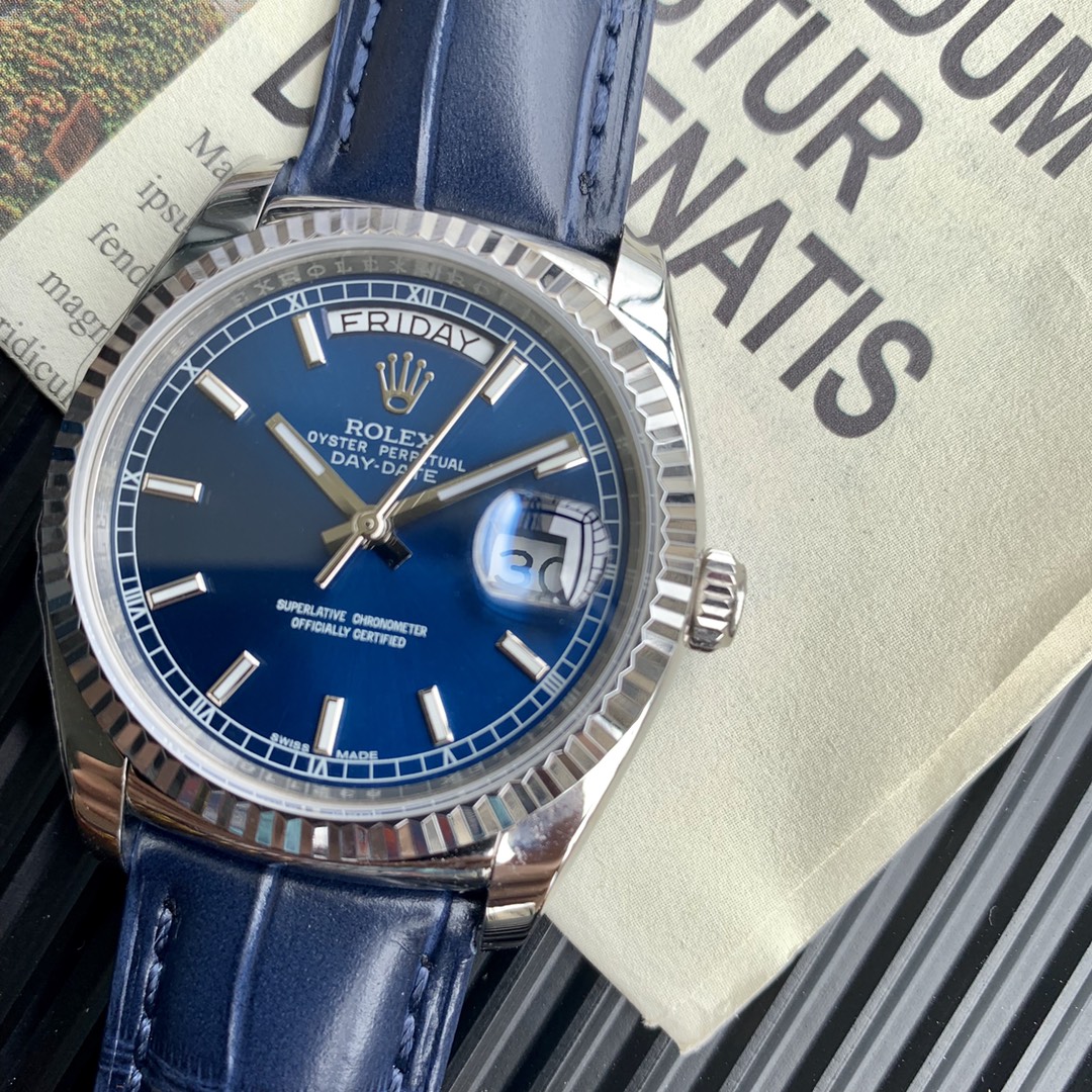Rolex Day-Date 36mm 40mm Dial Blue Steel Strap Blue Leather 118139-0004