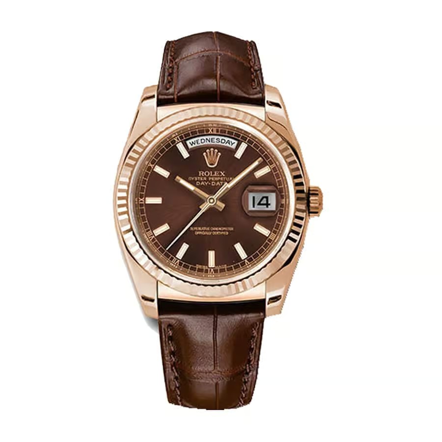 Rolex Day-Date 36mm 40mm Dial Chocolate Rose Gold Leather 118135-L