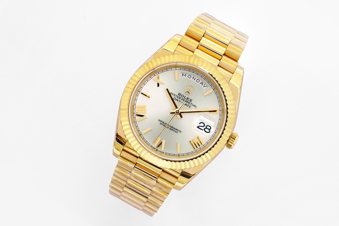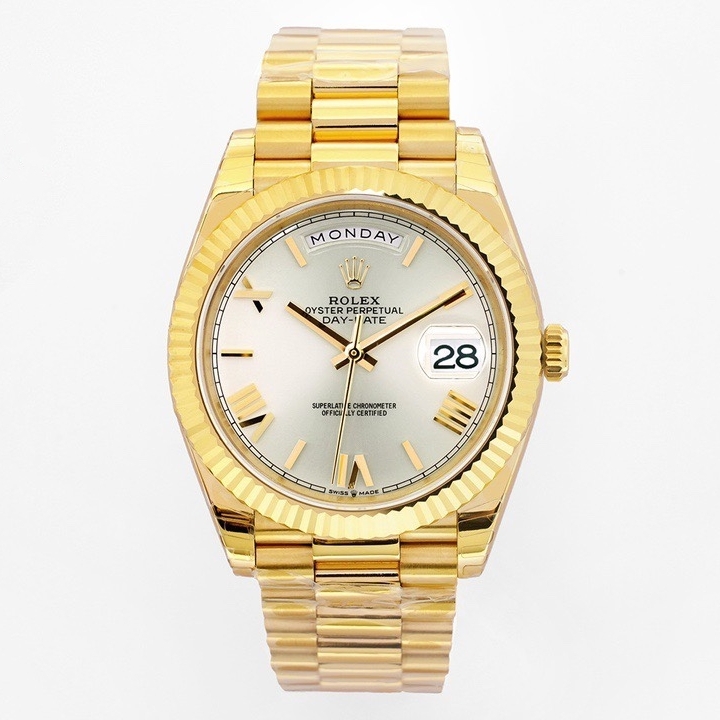 Rolex Day-Date 36mm 40mm Dial Silver Yellow Gold Roman Numerals 228238-0002