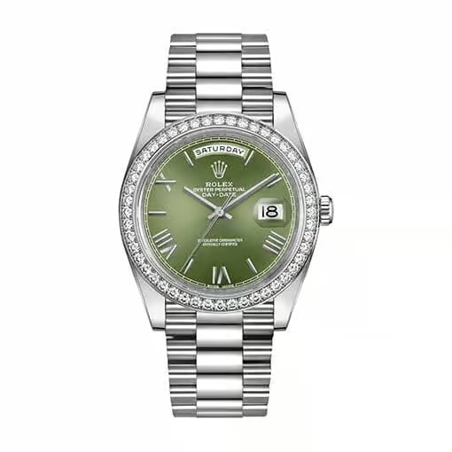 Rolex Day-Date 40mm Dial Olive Green platinum Diamond Roman Numerals 228349RBR-0030