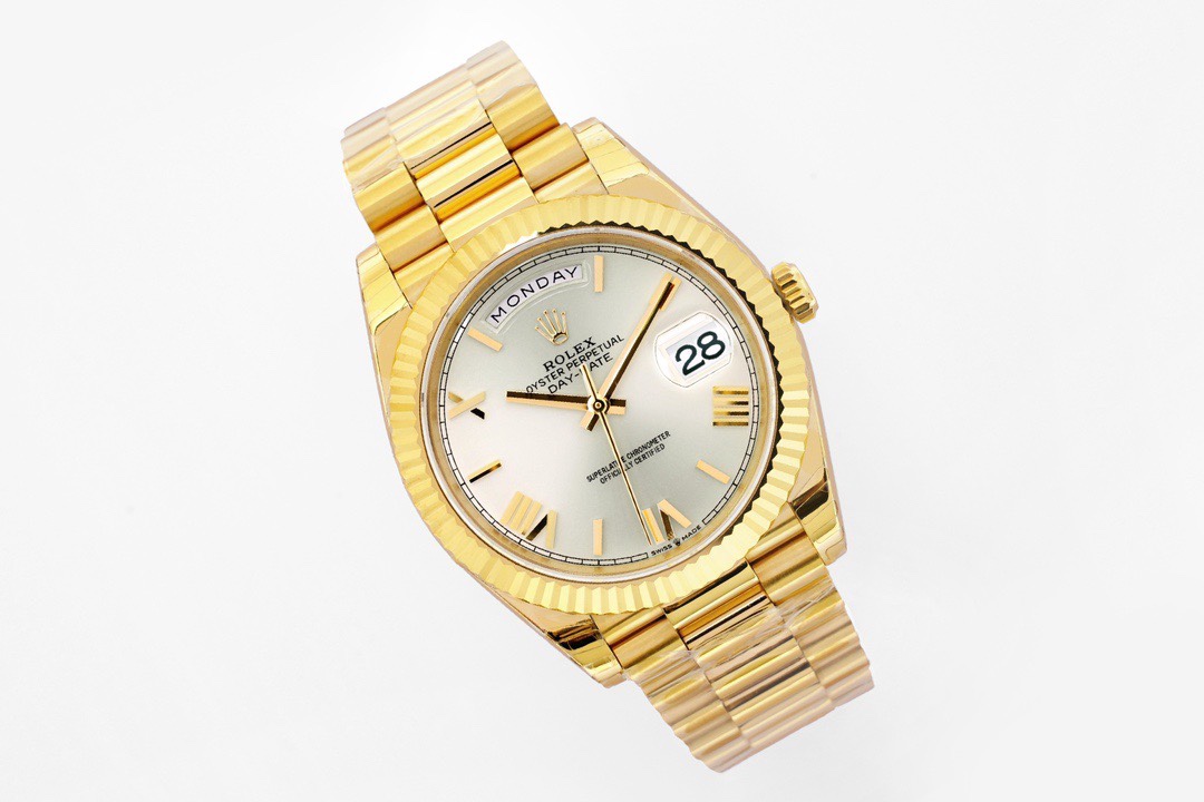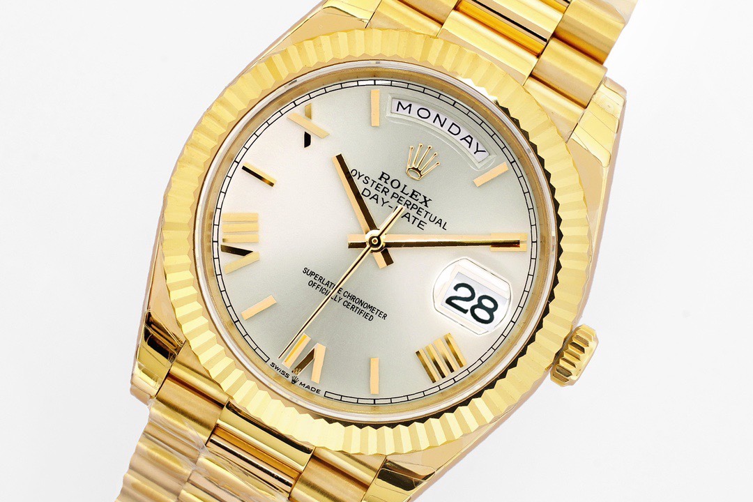 Rolex Day-Date 36mm 40mm Dial Silver Yellow Gold Roman Numerals 228238-0002