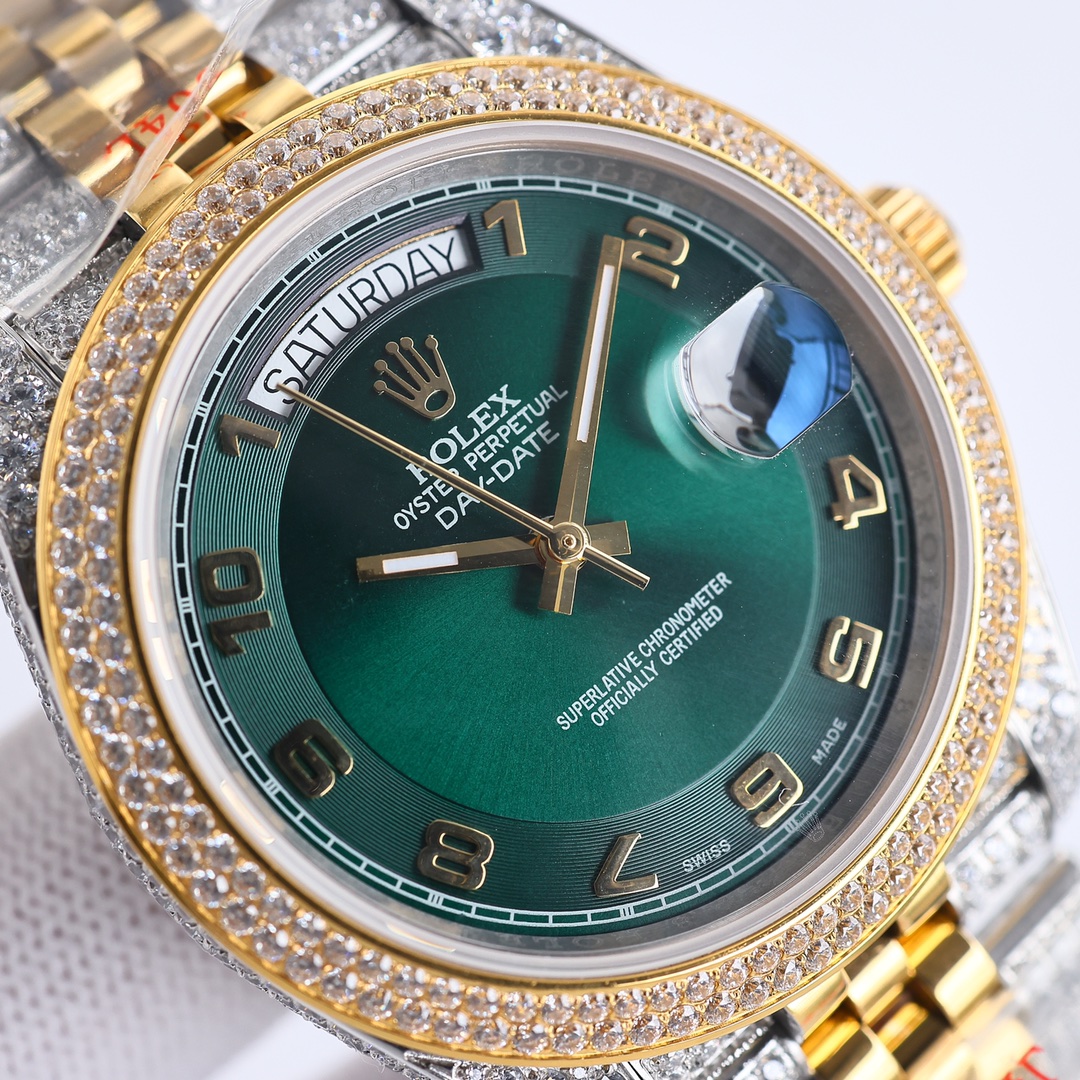 Rolex Day-Date Full Diamond 40mm Luxury Dark Green Dial