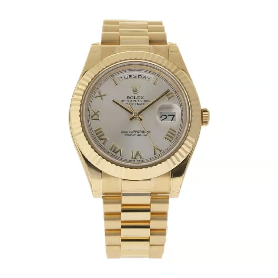 Rolex Day-Date II President 41mm Dial Silver Yellow Gold Roman Numeral 218238-83218