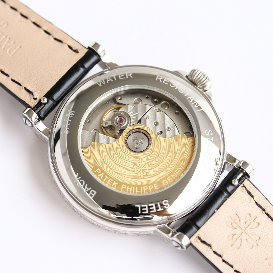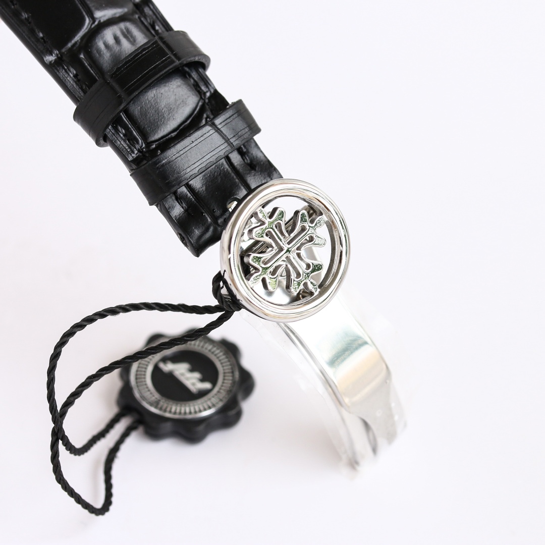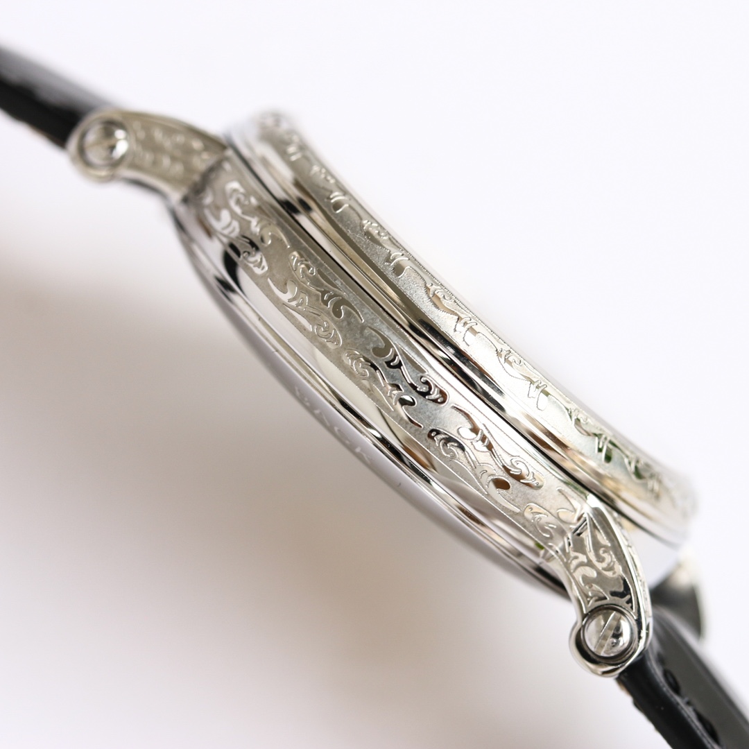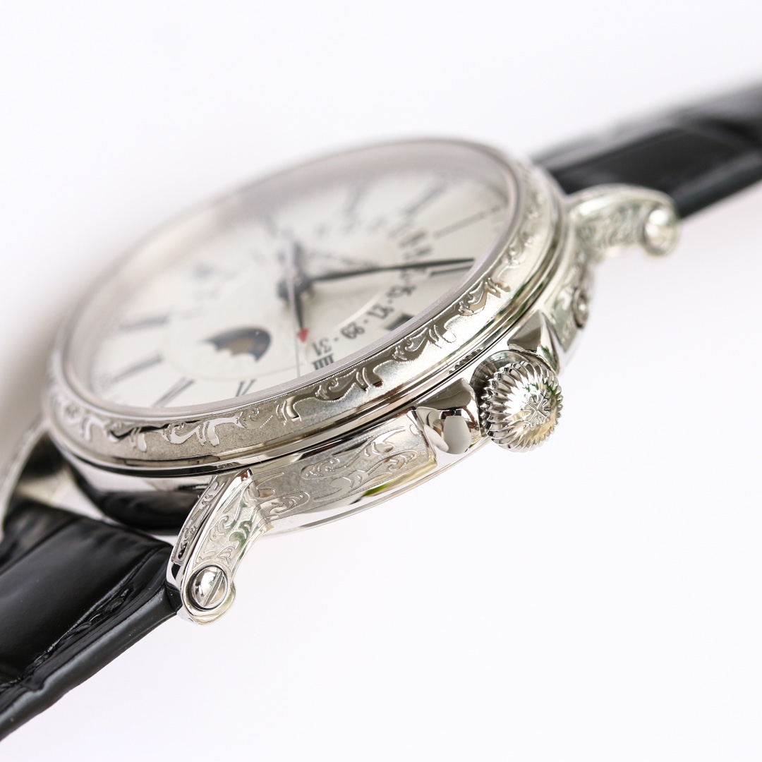| Patek Philippe Grand Complications 38mm White Dial Steel Carving Bezel Black Leather Strap 5160/500G-001 | |