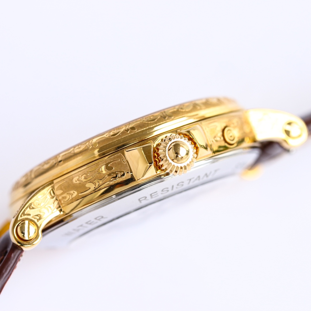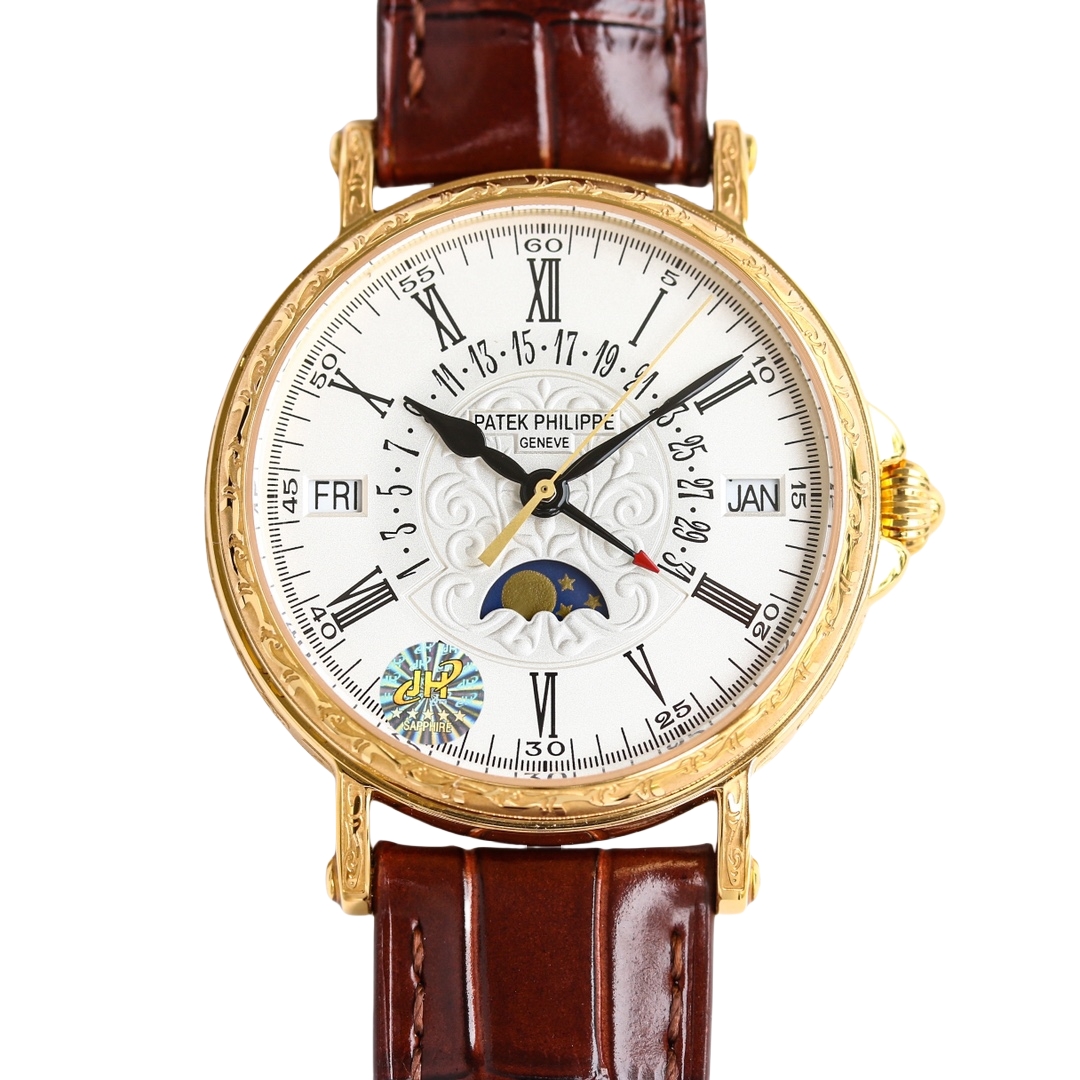 Patek Philippe Grand Complications 38mm White Dial Yellow Gold Carving Bezel Brown Leather Strap 5160J-001