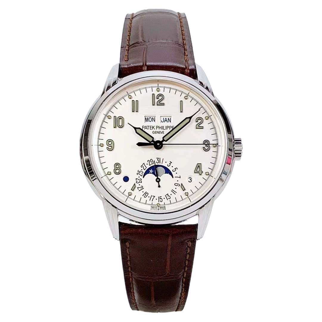 Patek Philippe Grand Complications 40mm White Dial Steel Bezel Brown Leather Strap 5320G-001