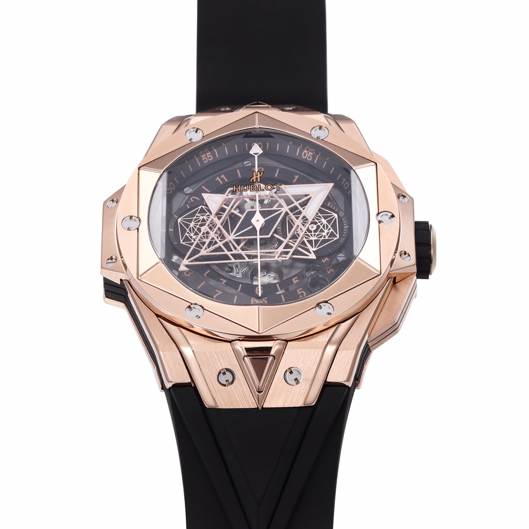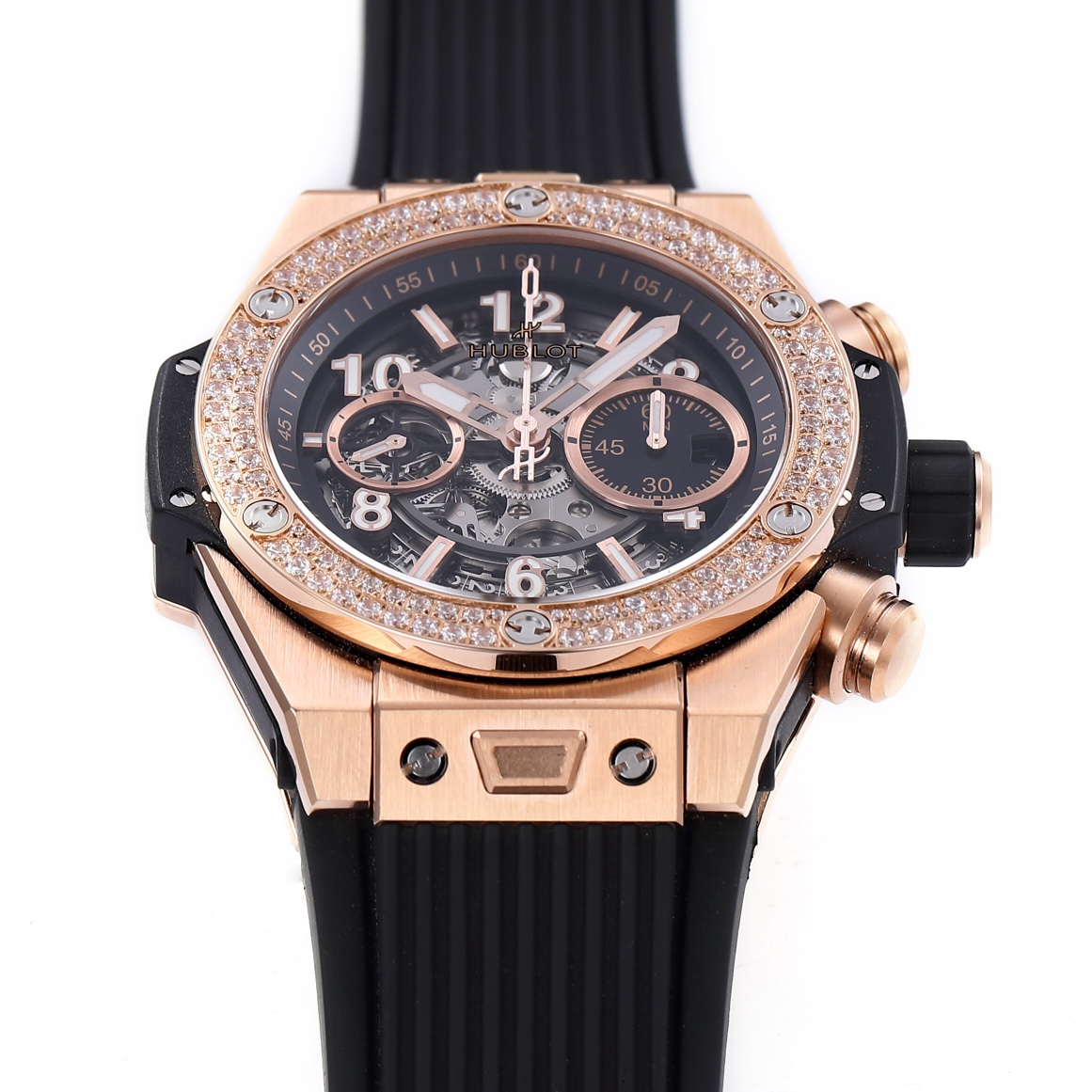 Hublot Big Bang Unico 45mm Dial Rose Gold Diamond Bezel Black Rubber Strap 411.OX.118X.RX.1104