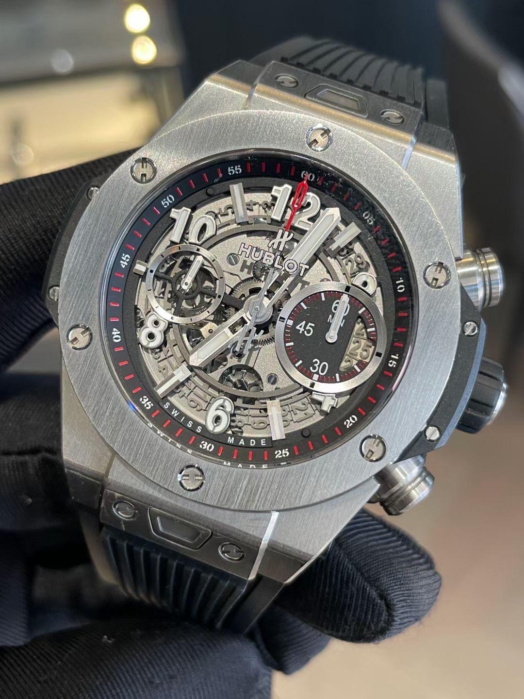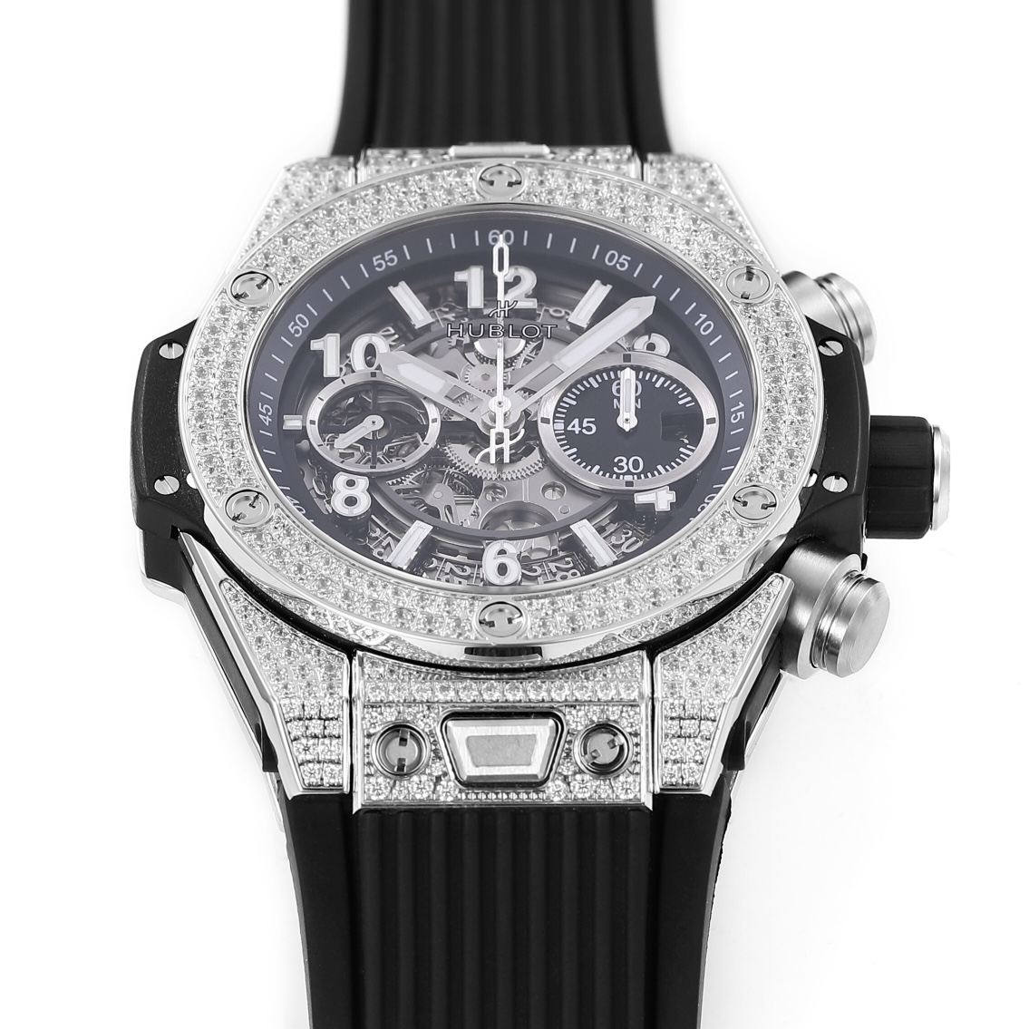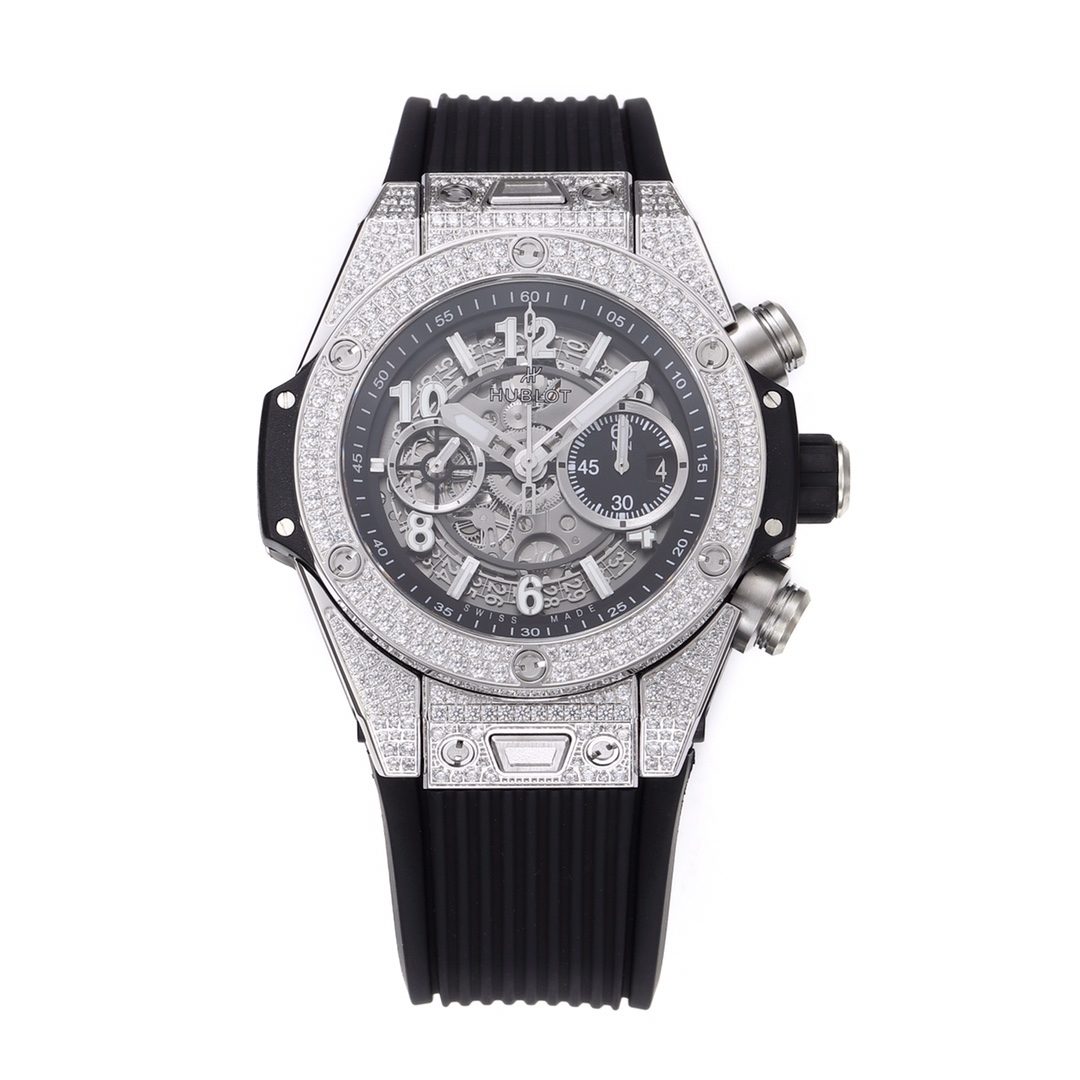 Hublot Big Bang Unico 45mm Dial Titanium Full Diamond Bezel Black Rubber Strap 411.NX.117X.RX.1704