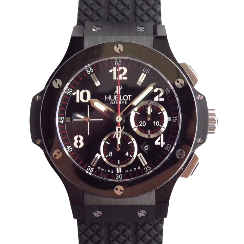 Hublot Big Bang Black 44mm Black Silver Dial Black Ceramics Bezel Black Rubber Strap 301.CM.130.RX