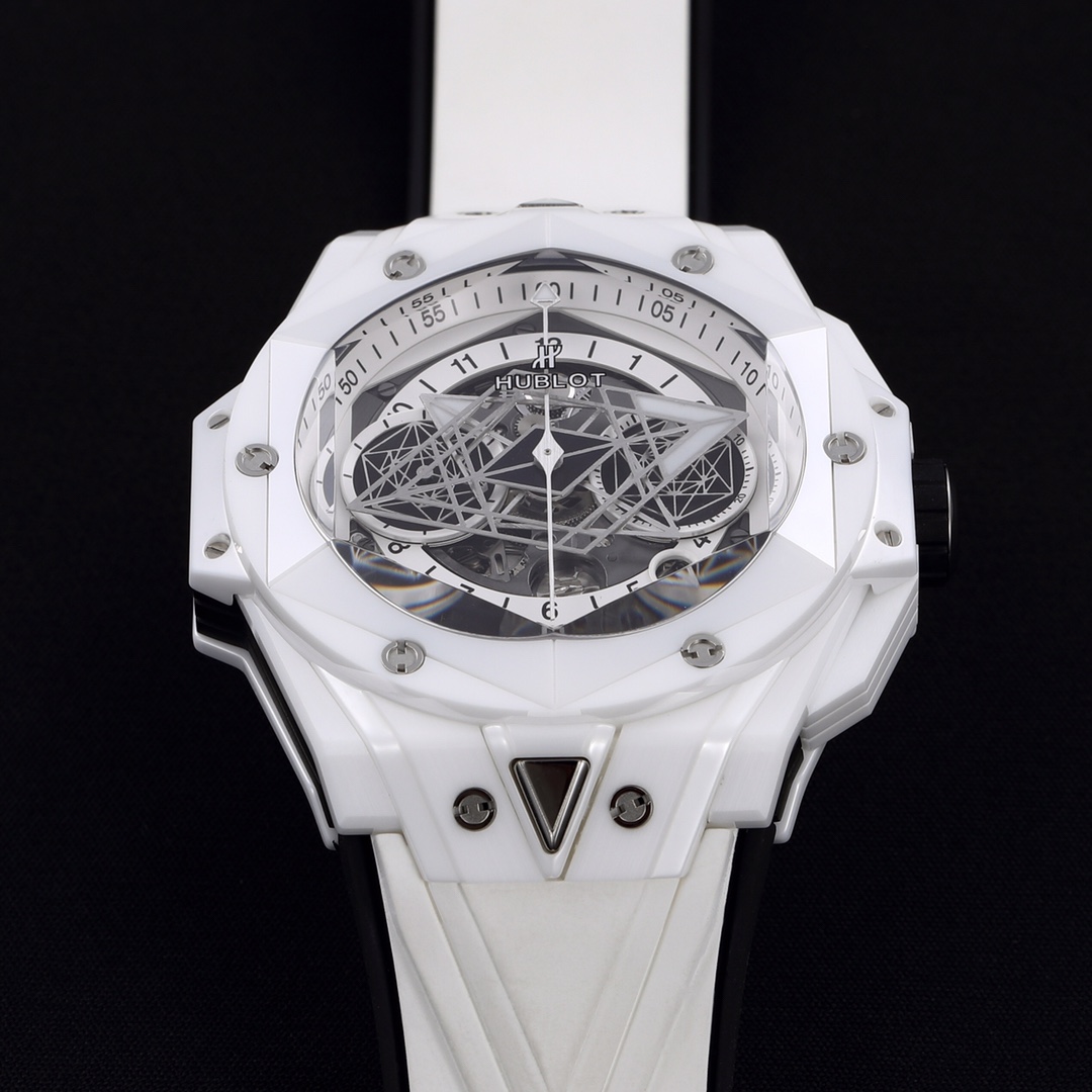 Hublot Big Bang Sang Bleu II 45mm Hollow Dial White Ceramics Bezel White Black Rubber Strap 418.HX.2001.RX.MXM21