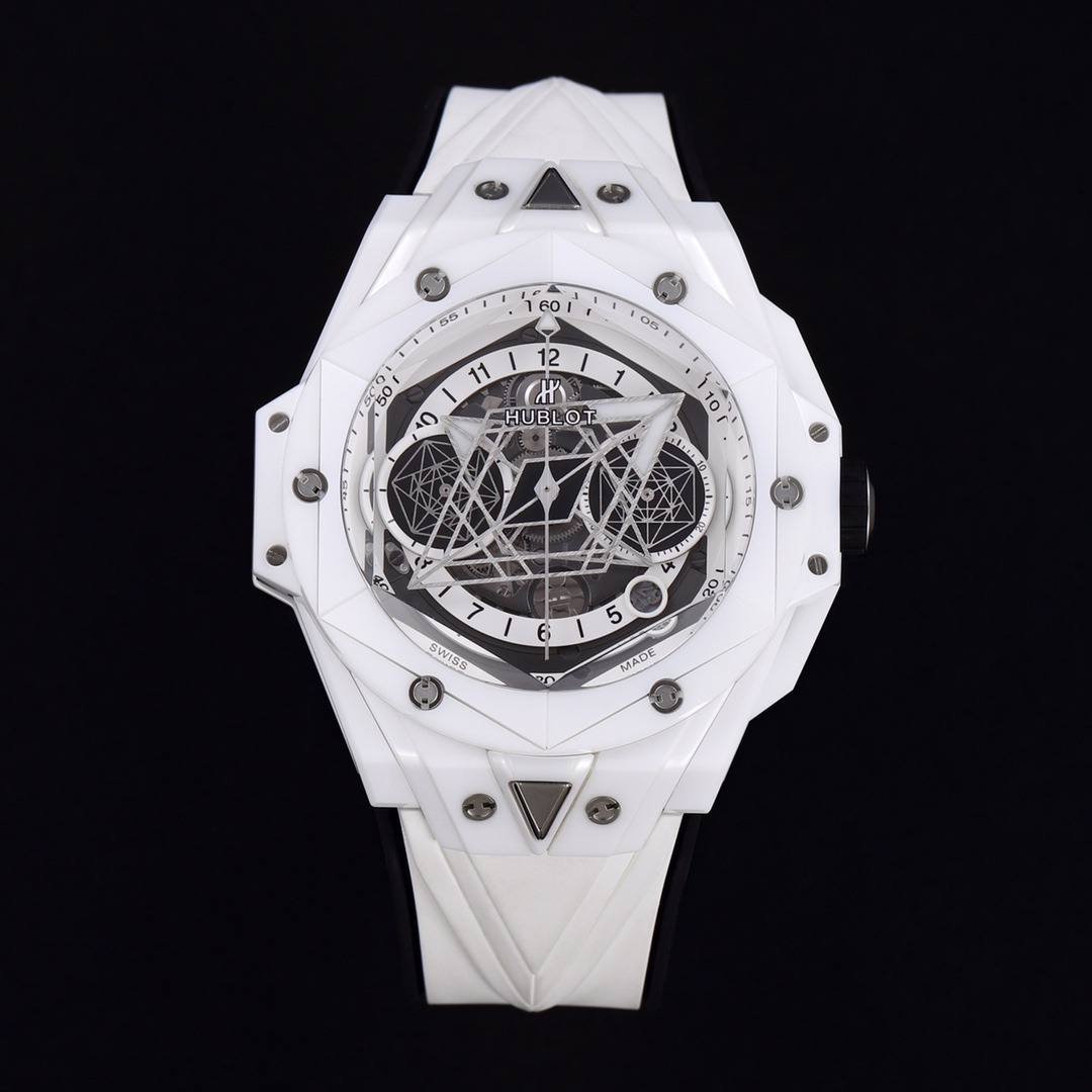 Hublot Big Bang Unico 45mm Dial White Ceramic Bezel White Black Rubber Strap 411.HX.1170.RX