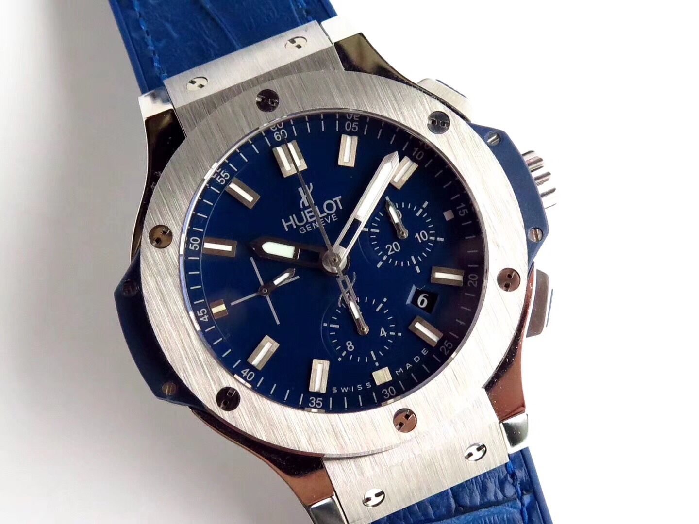 | Hublot Big Bang Black 44mm Blue Dial Steel Bezel Blue Leather Strap 301.SX.7170.LR | |