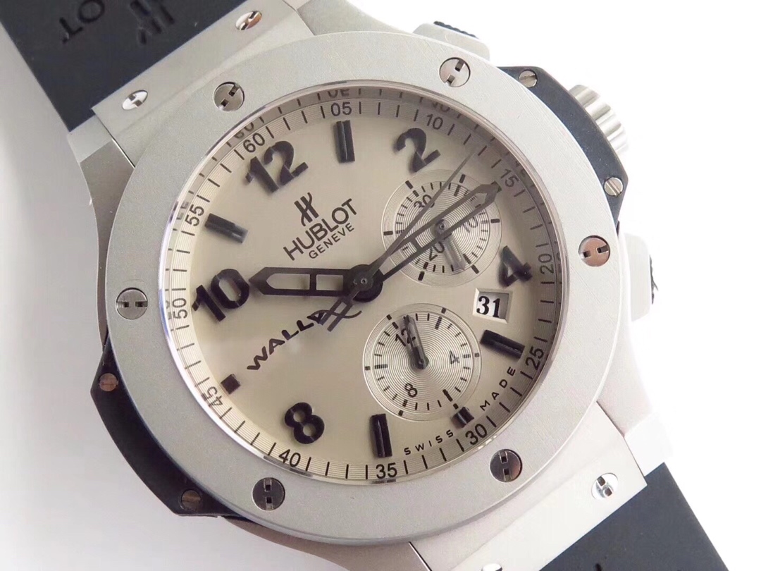 Hublot Big Bang Black 44mm Silver Alloy Dial Silver Alloy Bezel Black Rubber Strap 320.UI.5510.RX.WAL09