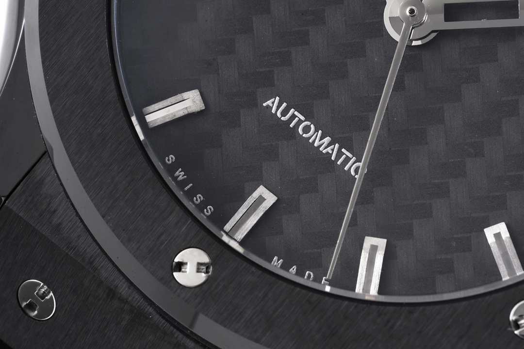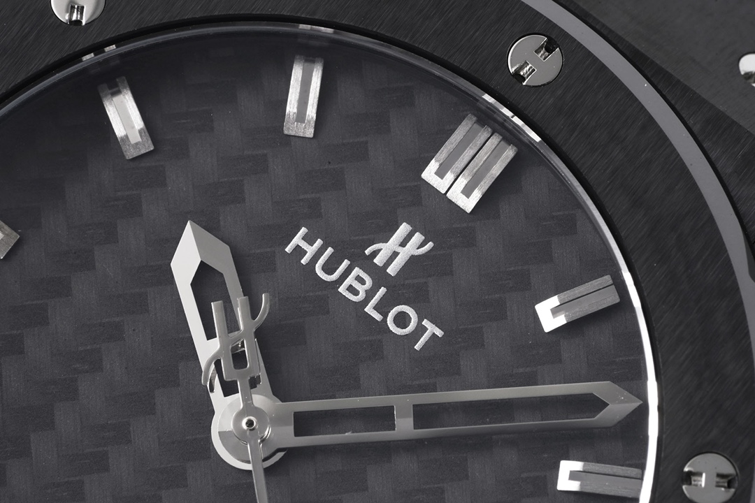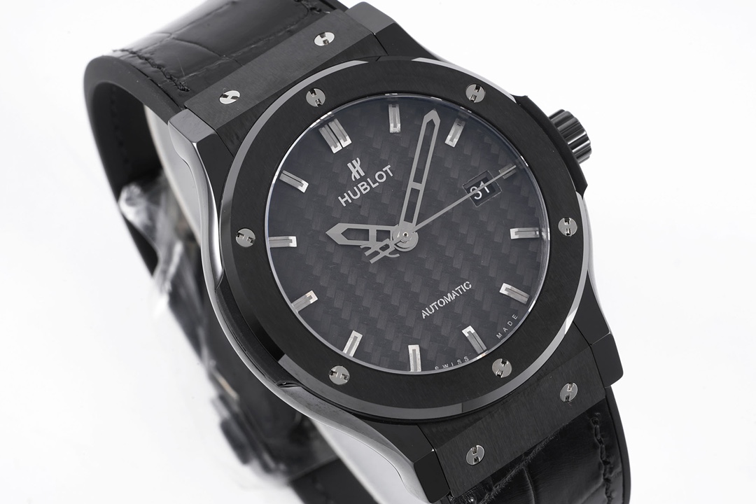 • Hublot Classic Fusion 42mm Black Carbon Fiber Dial Black Ceramics Bezel Black Crocodile Skin Strap 541.CM.1771.LR