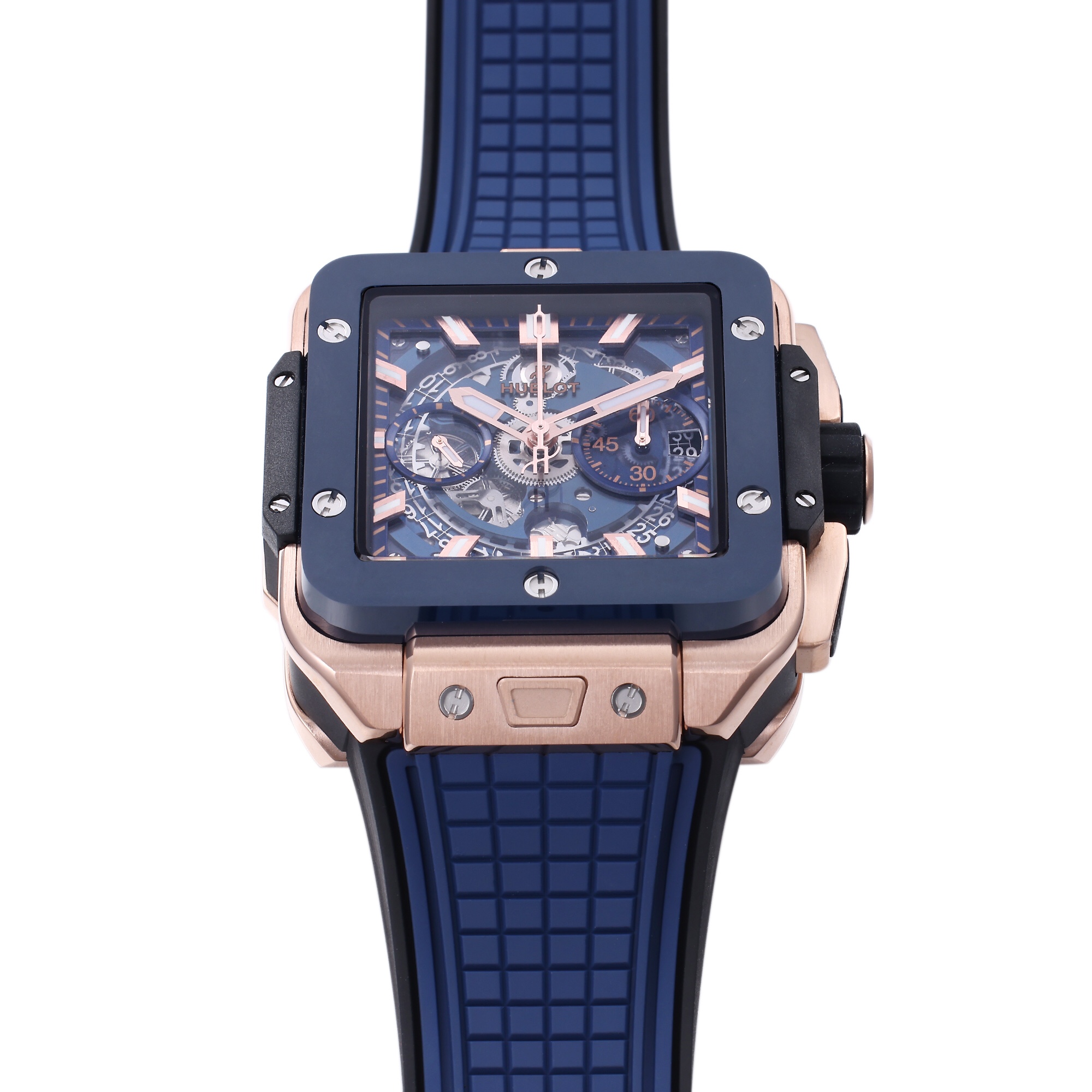 | Hublot Square Bang Unico 42mm Grey Dial Blue Rose Gold Bezel Blue Rubber Strap 821.OL.5180.RX | |