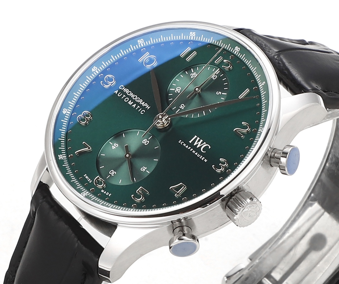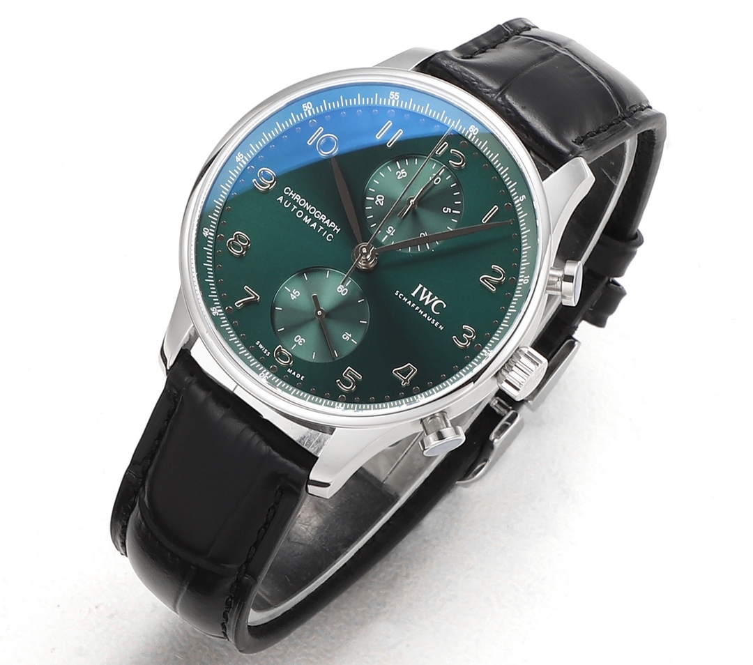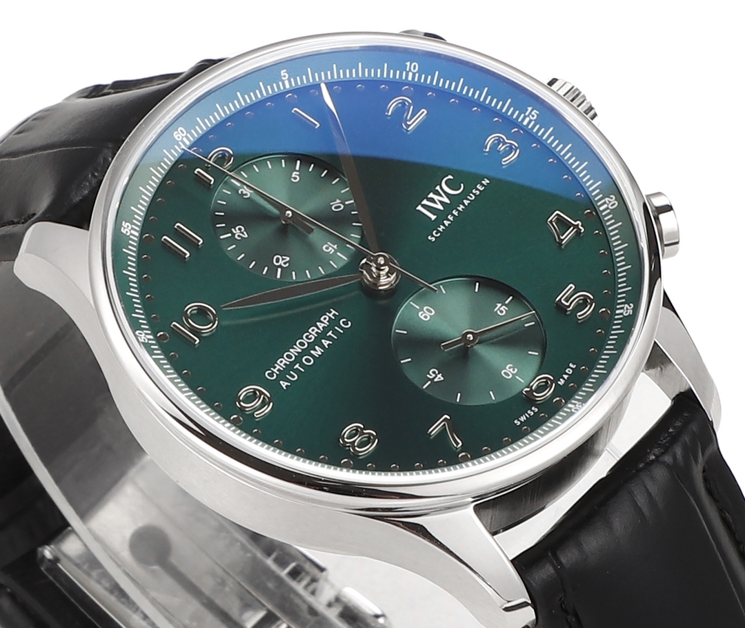 | IWC Portugieser 41mm Green Dial Steel Bezel Black Leather Strap IW371615 | |