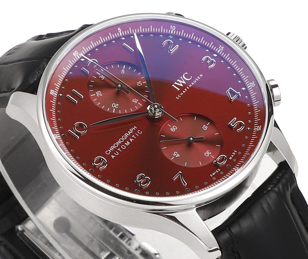 | IWC Portugieser 41mm Red Dial Steel Bezel Black Leather Strap IW371616 | |