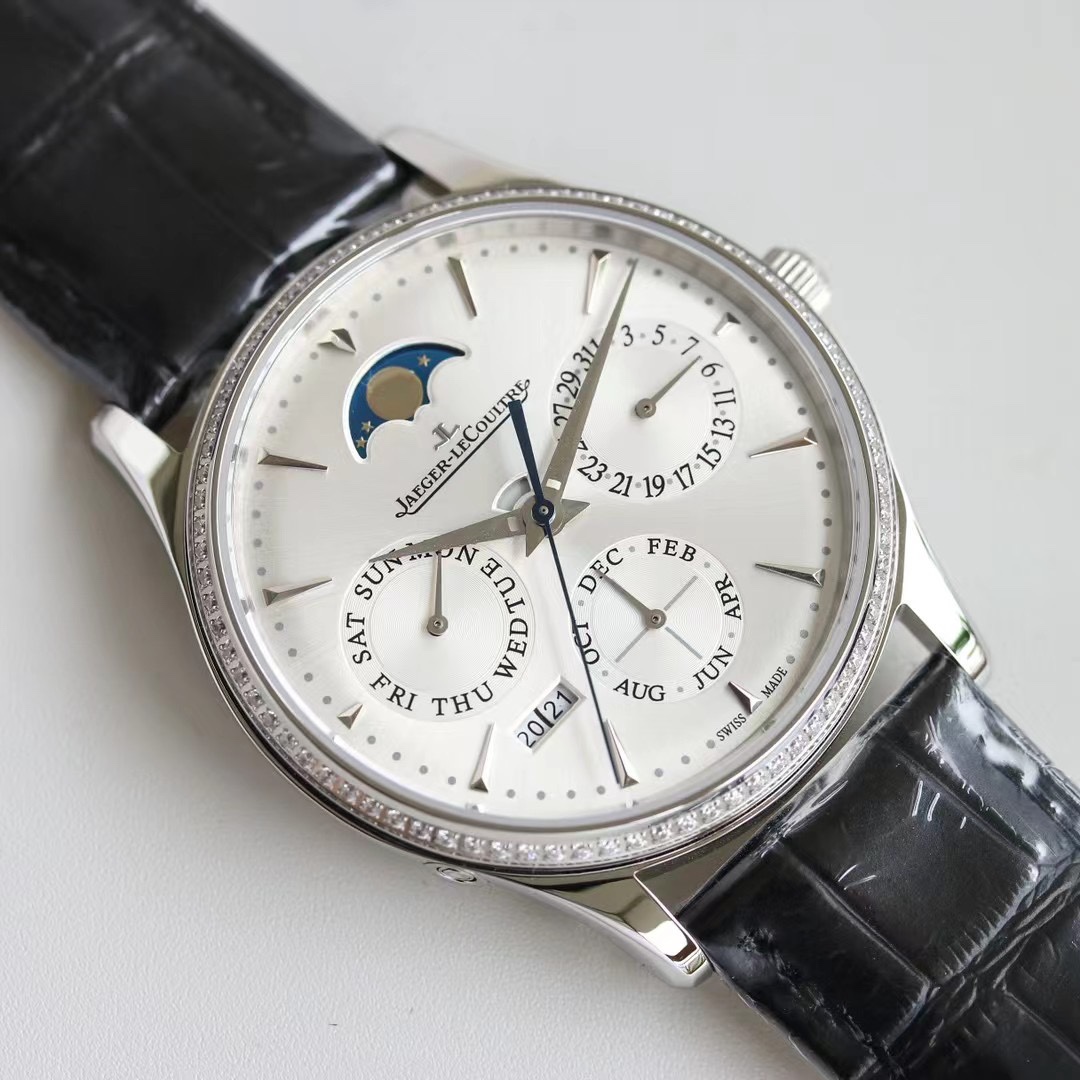| Jaeger-LeCoultre Master Ultra Thin 39mm White Dial Diamond Steel Bezel Black Leather Strap Q114250X Ladies | |