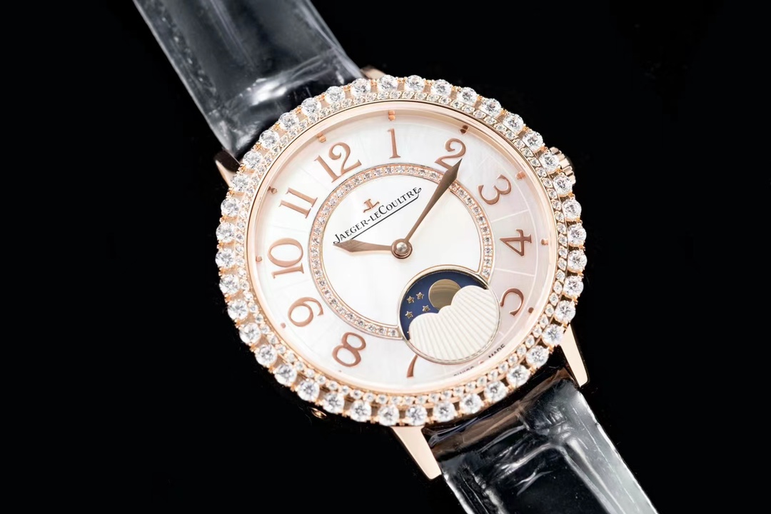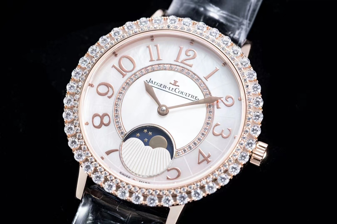 | Jaeger-LeCoultre Rendez-Vous Dazzling Moon 36mm White Dial Diamond Pink Gold Bezel Black Leather Strap Q352357X Ladies | |