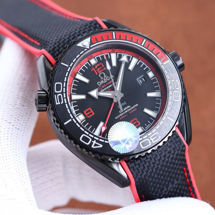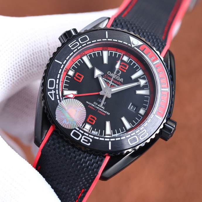 Omega Seamaster Planet Ocean 600m 45.5mm Black Red Dial Black Red Bezel Nylon Strep 215.92.46.22.01.003