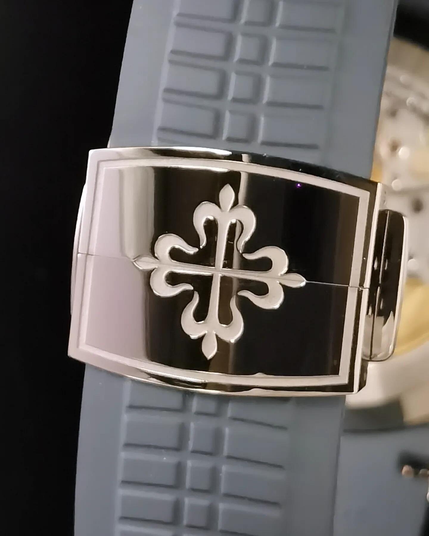 | Patek Philippe Aquanaut 40.8mm Grey Blue Dial Steel Bezel Grey Blue Rubber Strap 5164G-001 | |