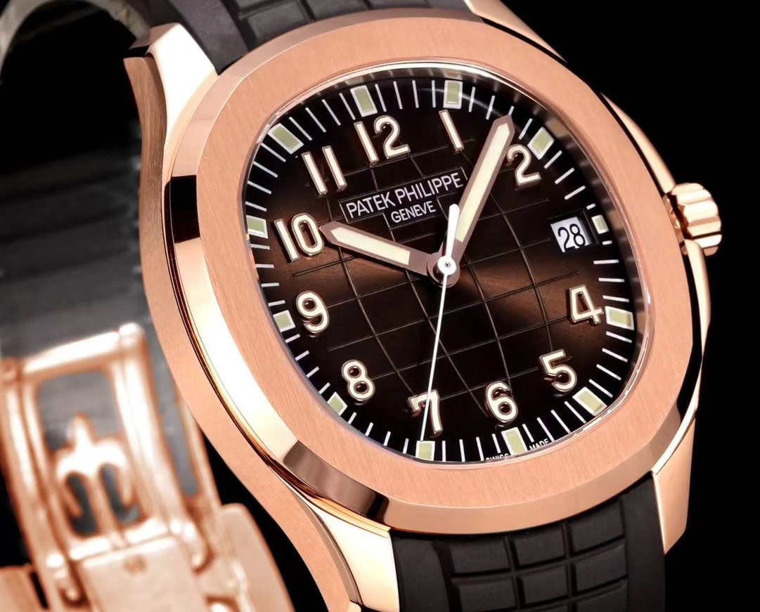 | Patek Philippe Aquanaut 40mm Brown Dial Rose Gold Bezel Brown Strap 5167R-001 | |
