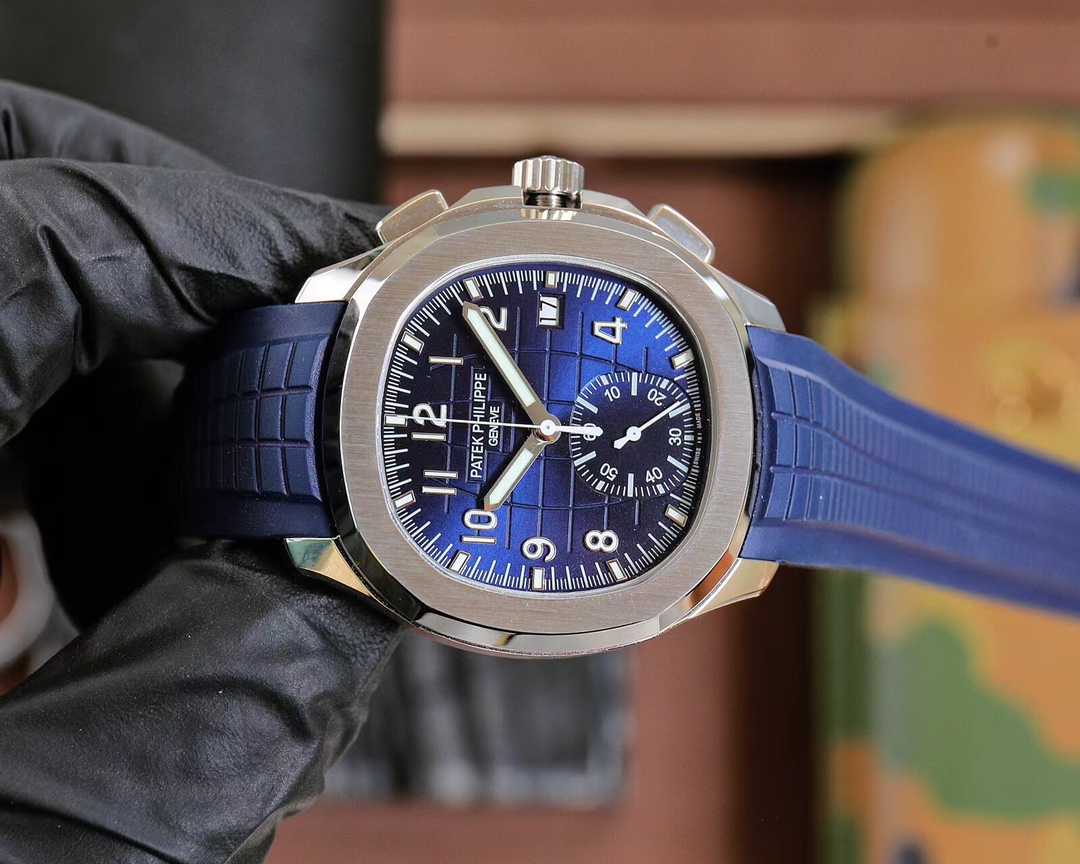 | Patek Philippe Aquanaut 42.2mm Blue Dial Seetl Bezel Blue Rubber Strap 5968G-001 | |
