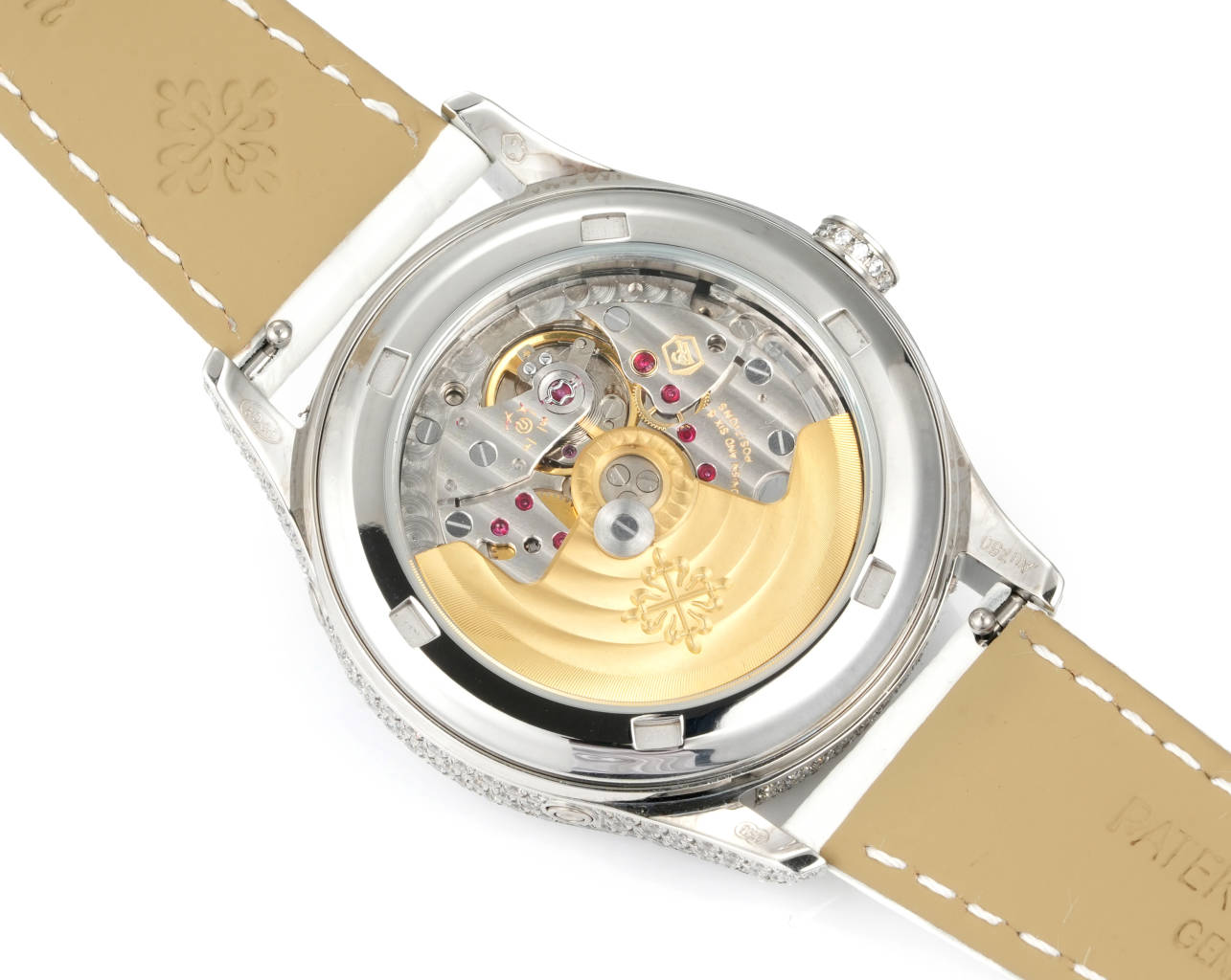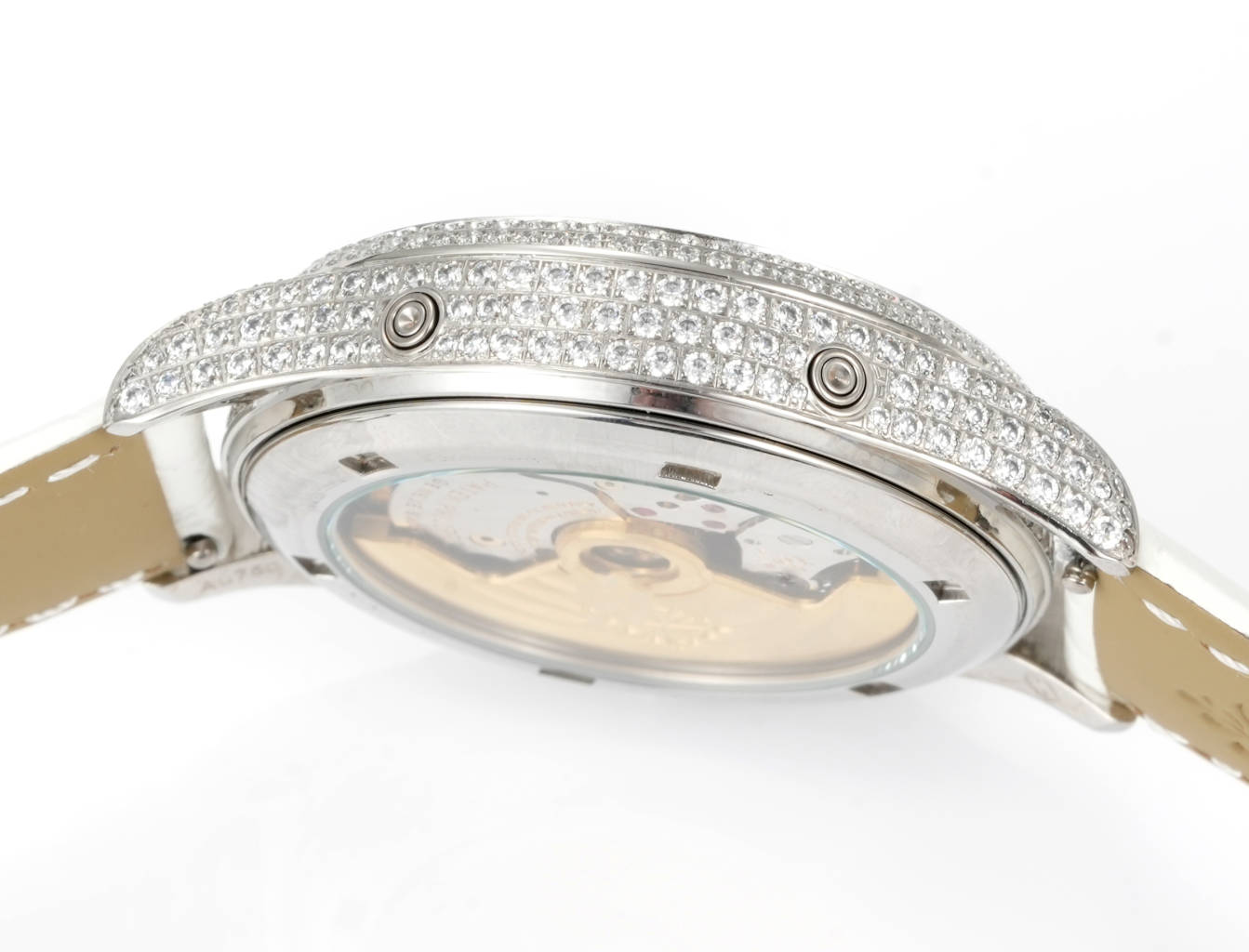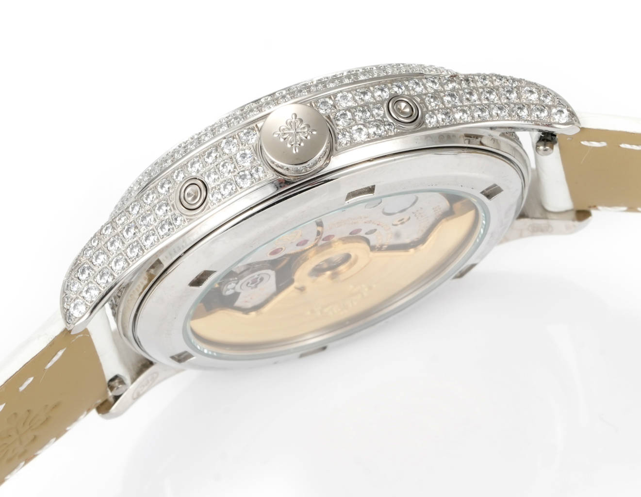 | Patek Philippe Complications 37mm White Pearl Dial Diamond Bezel White Leather Strap 4937G-001 Woman Ladies | |