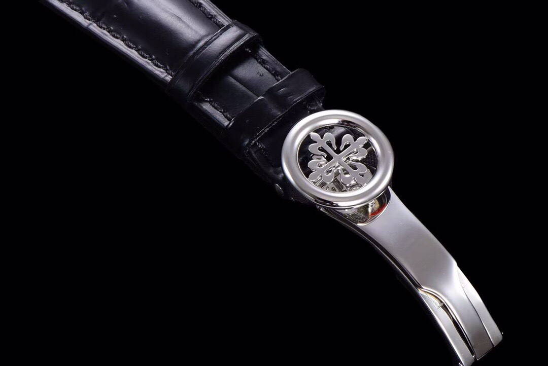 | Patek Philippe Complications 38.5mm White Dial Steel Bezel Black Leather Strap 5396G-011 | |