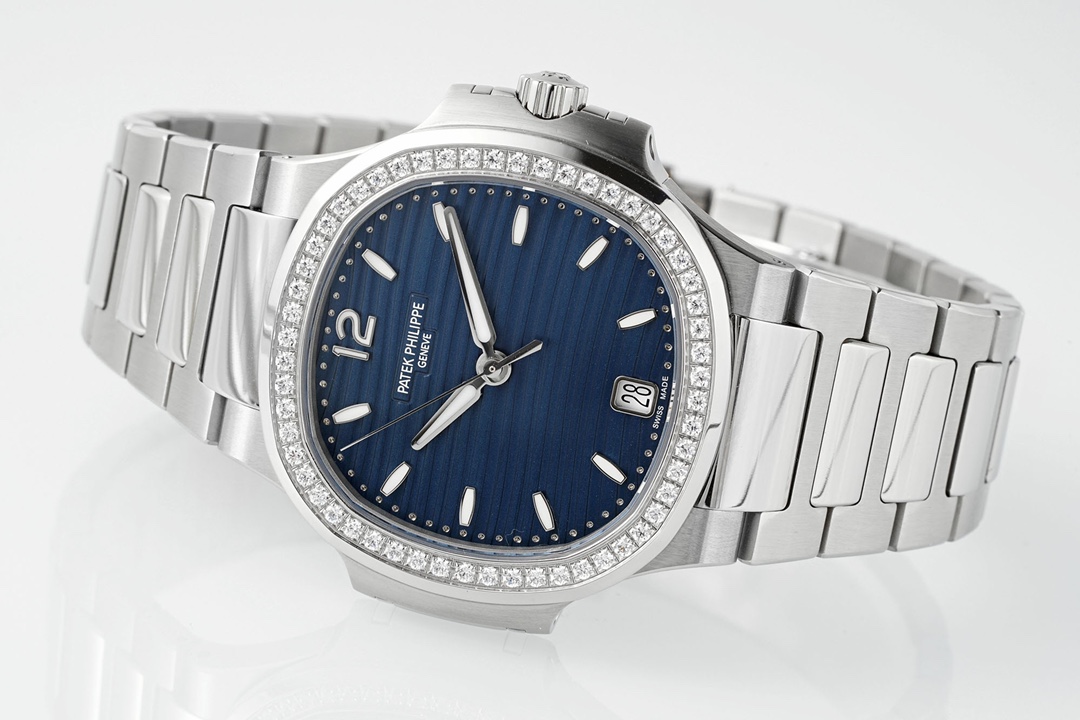 Patek Philippe Nautilus 35.2mm Blue Dial Diamond Bezel Steel Ladies 7118/1200A-001 Woman Ladies