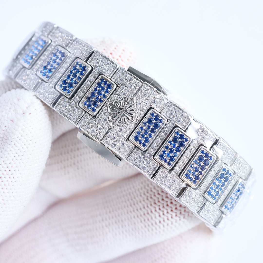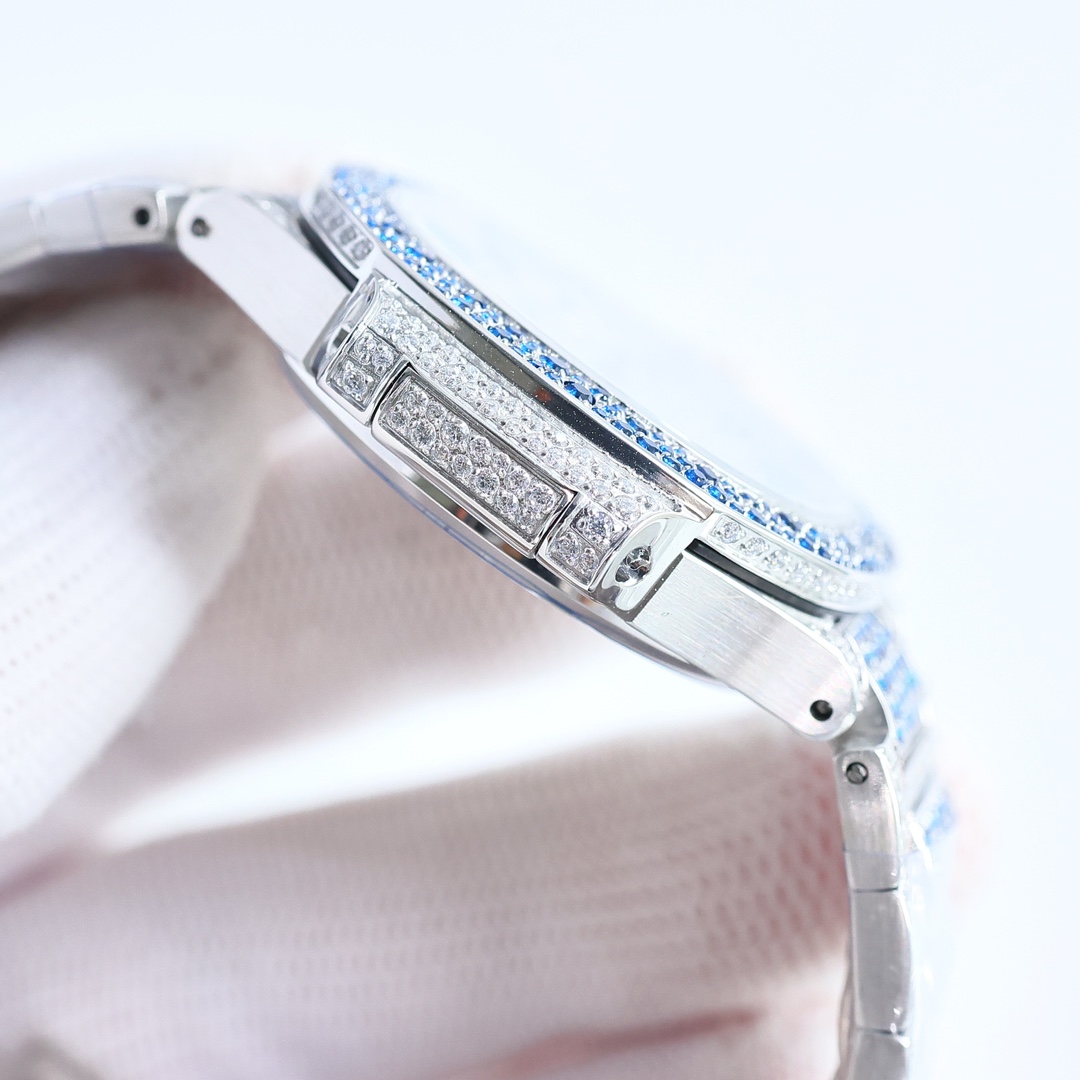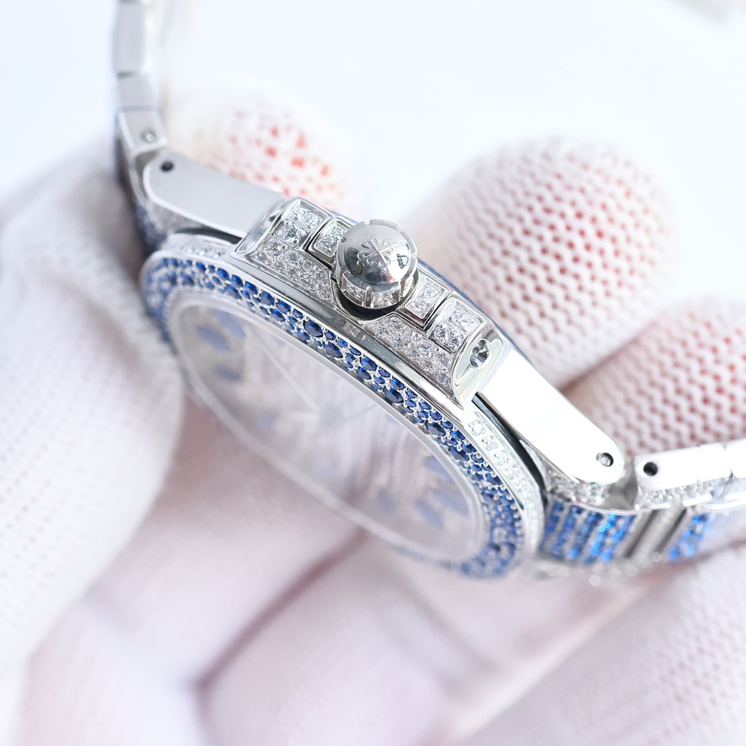 | Patek Philippe Nautilus 35.2mm Blue Gen Full Diamond Dial Platinum Bezel 7118/14521G-001 Women | |