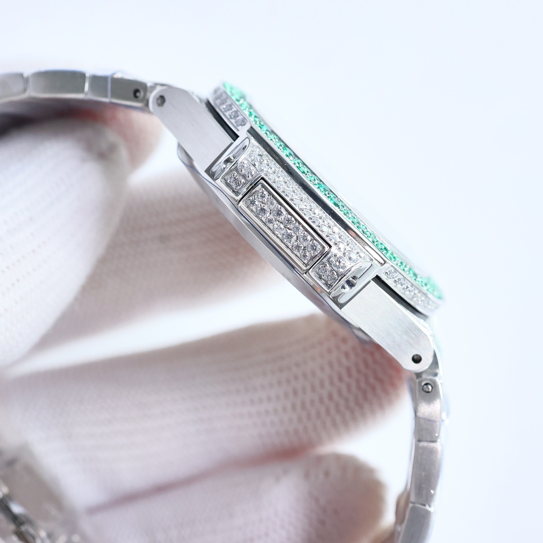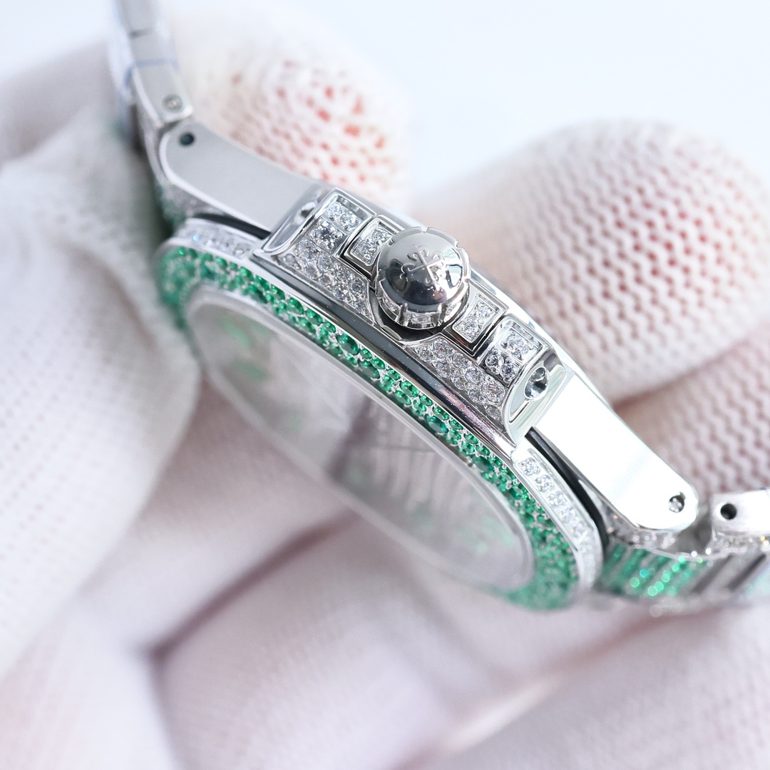 | Patek Philippe Nautilus 35.2mm Green Gen Full Diamond Dial Platinum Bezel 7118/1453G-001 Women | |