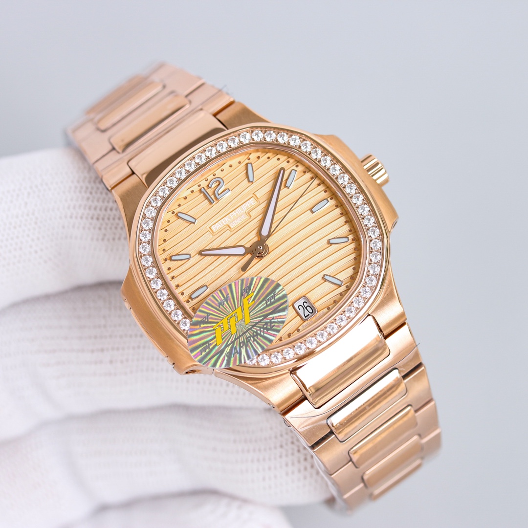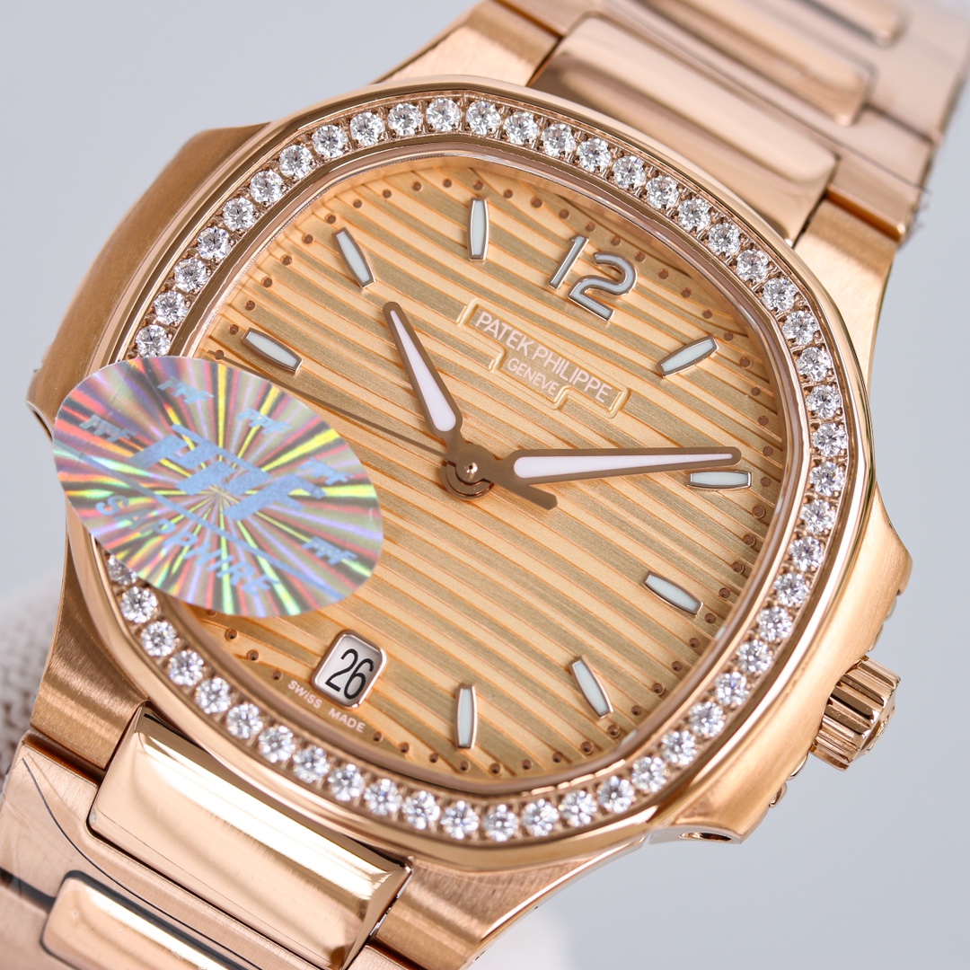 Patek Philippe Nautilus 35.2mm Yellow Dial Rose Gold Diamond Bezel 7118/1200R-010 Woman Ladies