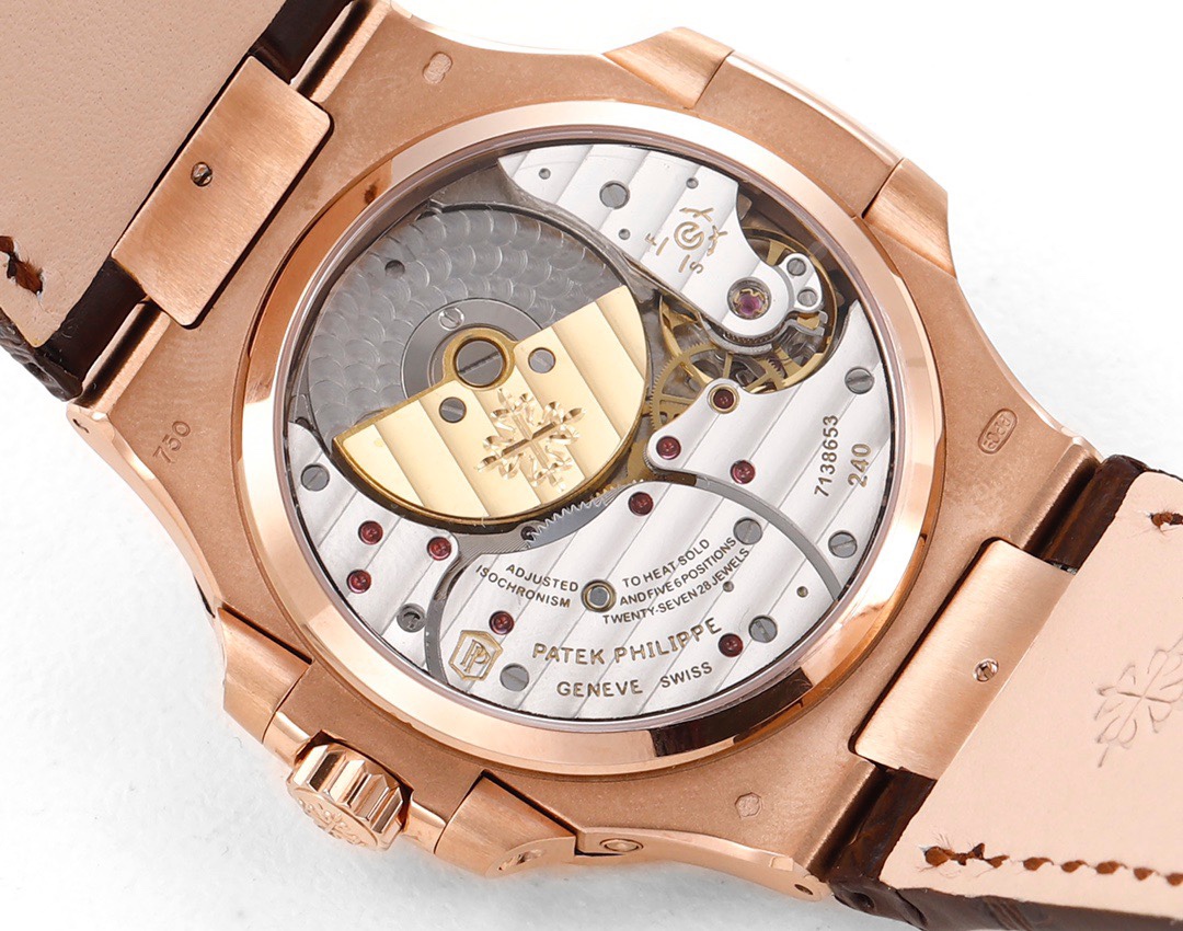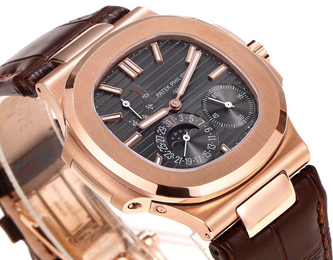 Patek Philippe Nautilus 40mm Black Dial Rose Gold Bezel Brown Leather 5712R-001