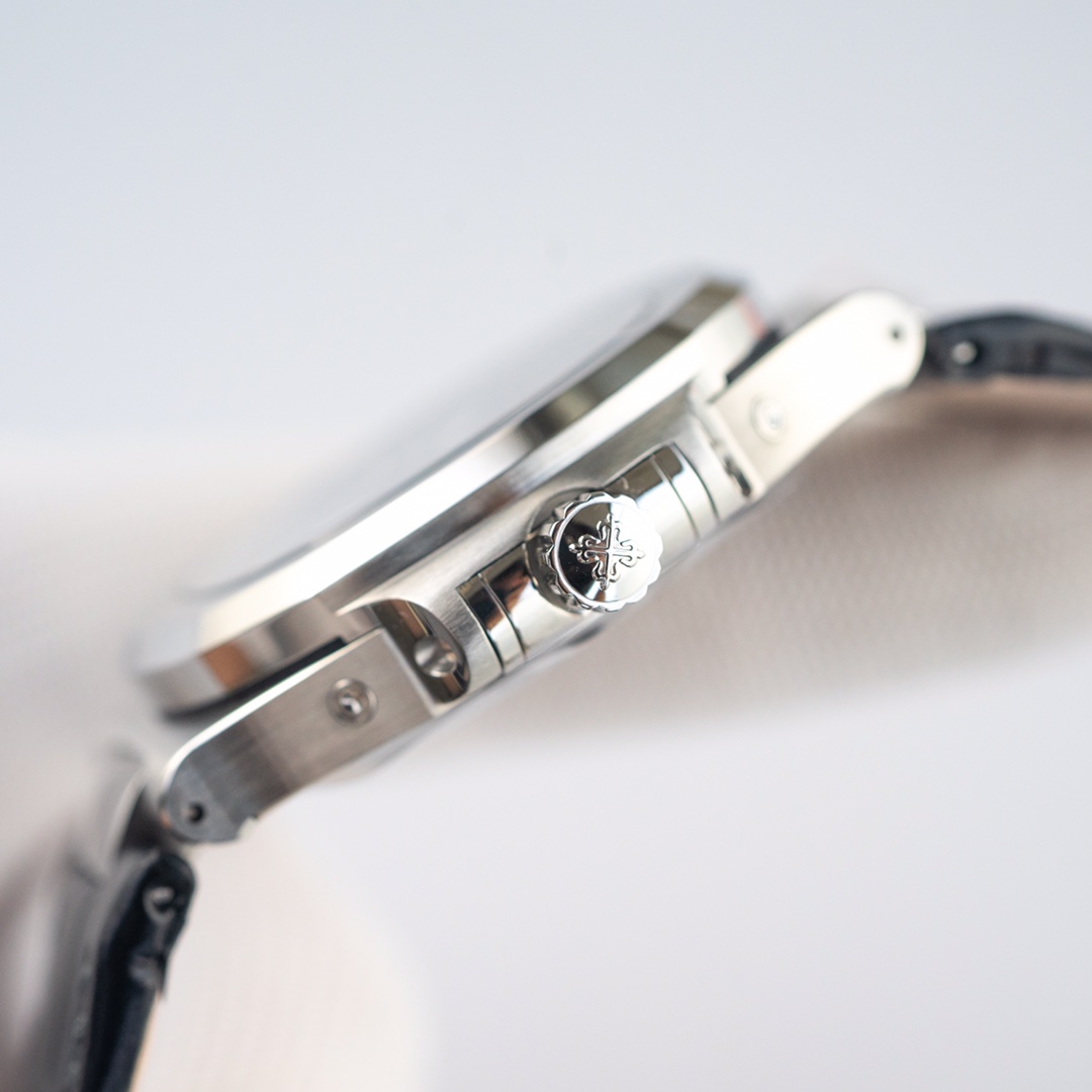 Patek Philippe Nautilus 40mm Black Grey Dial Steel Bezel Black Leather Moon Phase 5726A-001