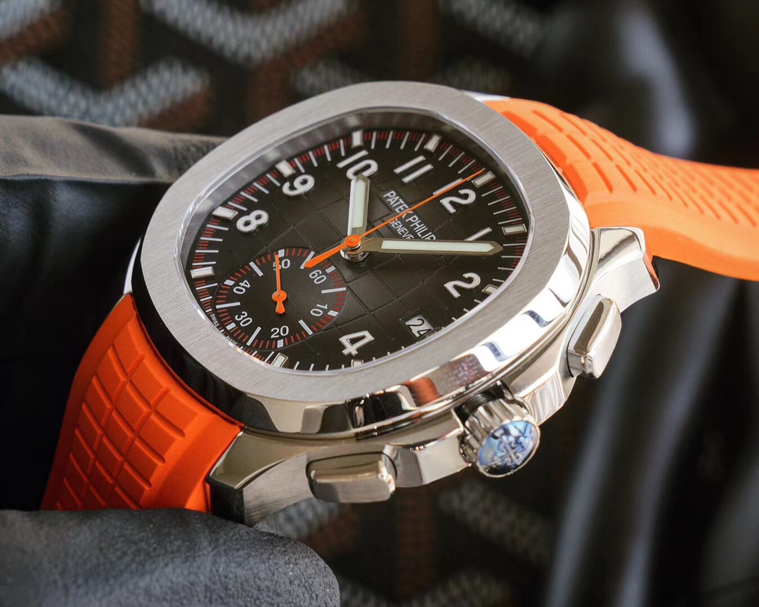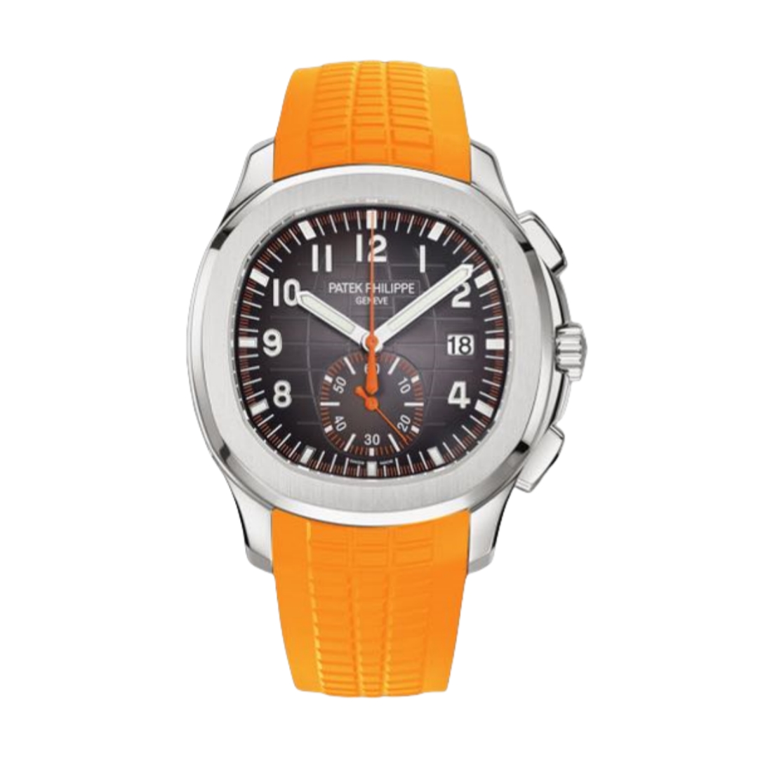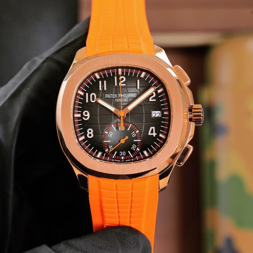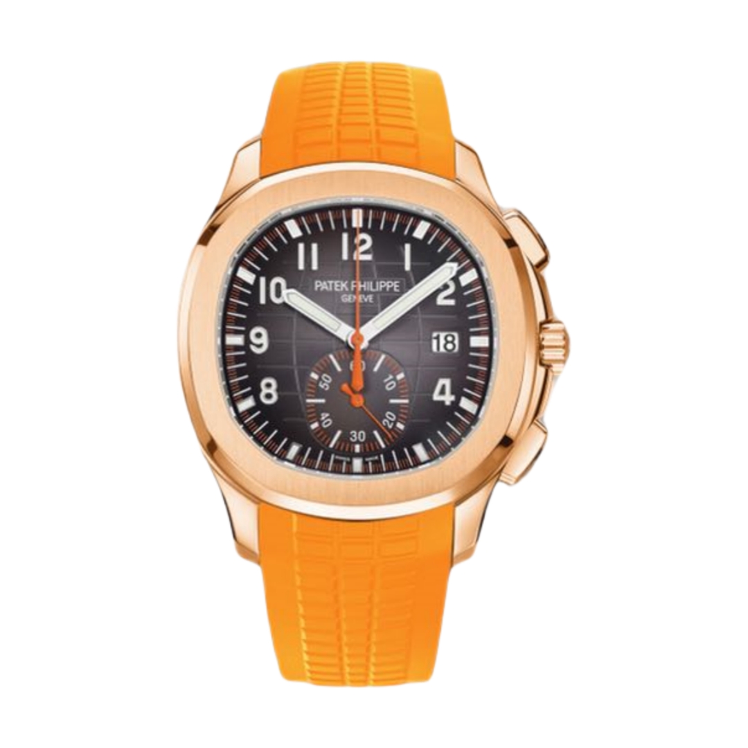 Patek Philippe Aquanaut 42.2mm Black Dial Rose Gold Bezel Orange Strap Chronograph 5968A