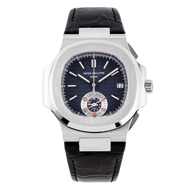 Patek Philippe Nautilus 40.5mm Blue Dial Steel Bezel Black Leather Complications 5980