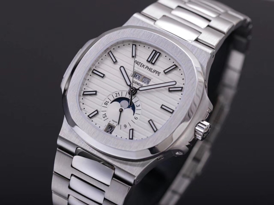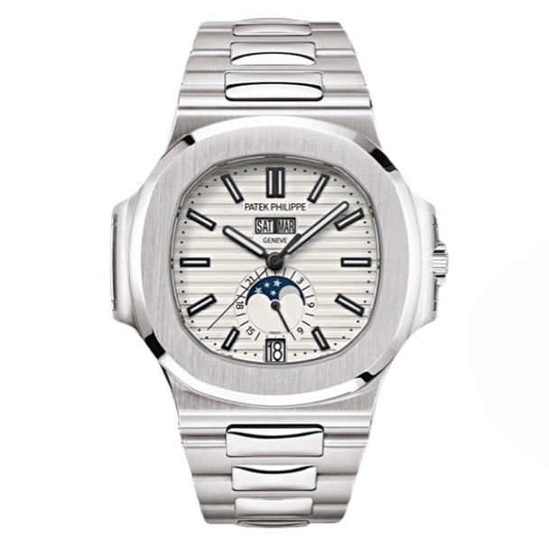 Patek Philippe Nautilus 40.5mm White Moon Phase Dial Steel Bezel 5726/1A-010