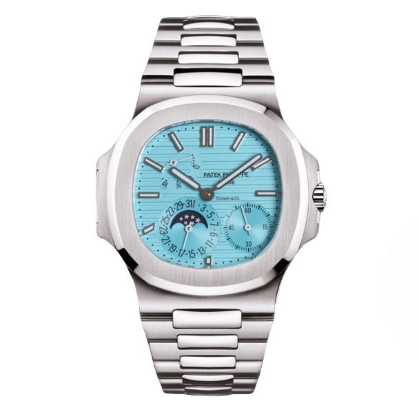 Patek Philippe Nautilus 40mm Tiffany Blue Dial Moon Phase Steel Bezel 5712 Complications