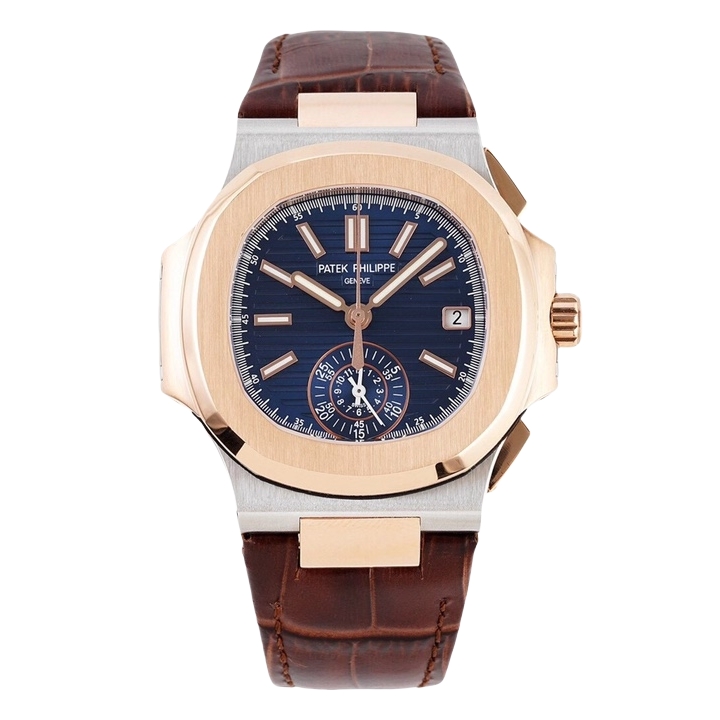 Patek Philippe Nautilus 40.5mm Blue Dial Rose Gold Bezel Brown Leather 5980R